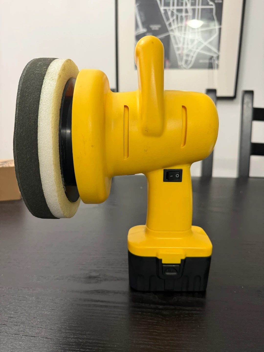 83Selling a yellow cordless car buffer and polisher! It comes with a charging stand, battery, and several buffing pads. Works well. Great for keeping your car looking its best