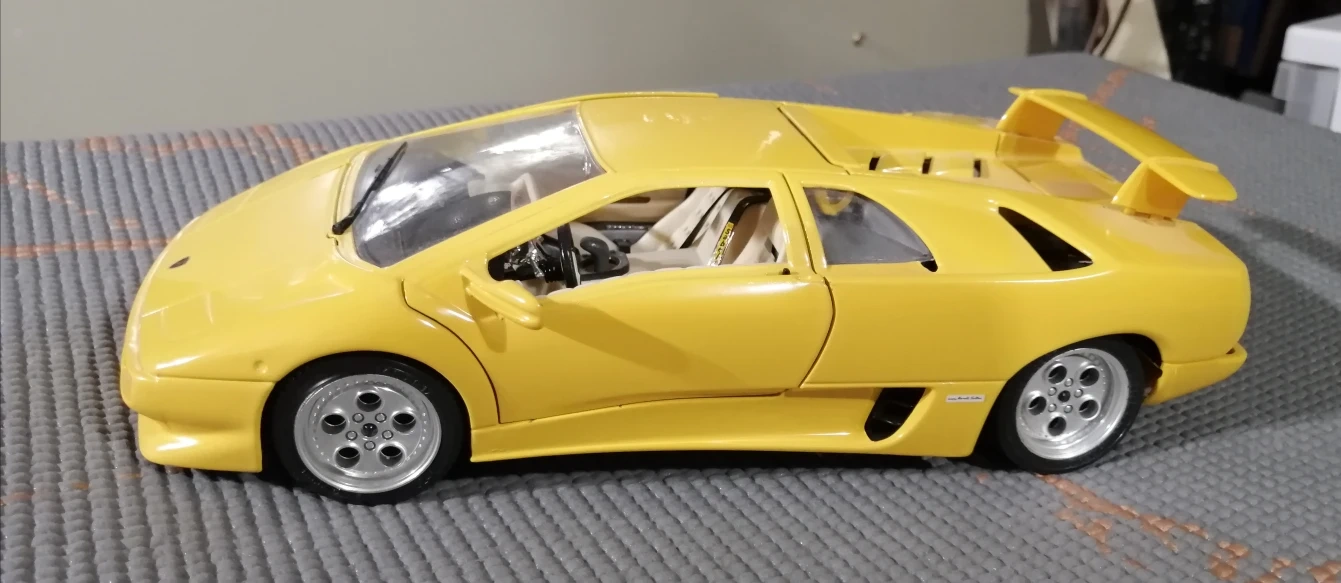 Selling a yellow Lamborghini Diablo model car. It's a 1/18 scale diecast model and looks great on display