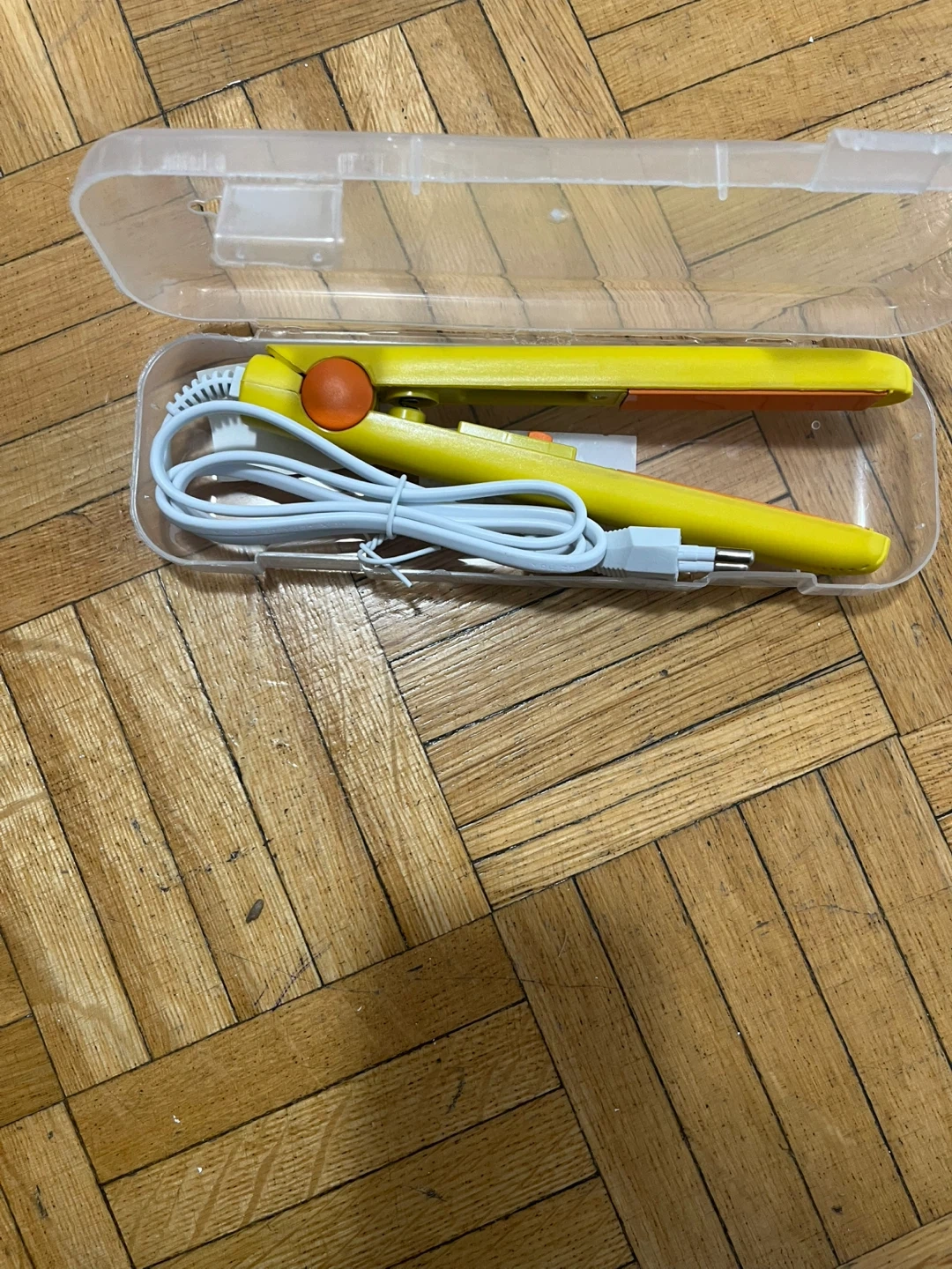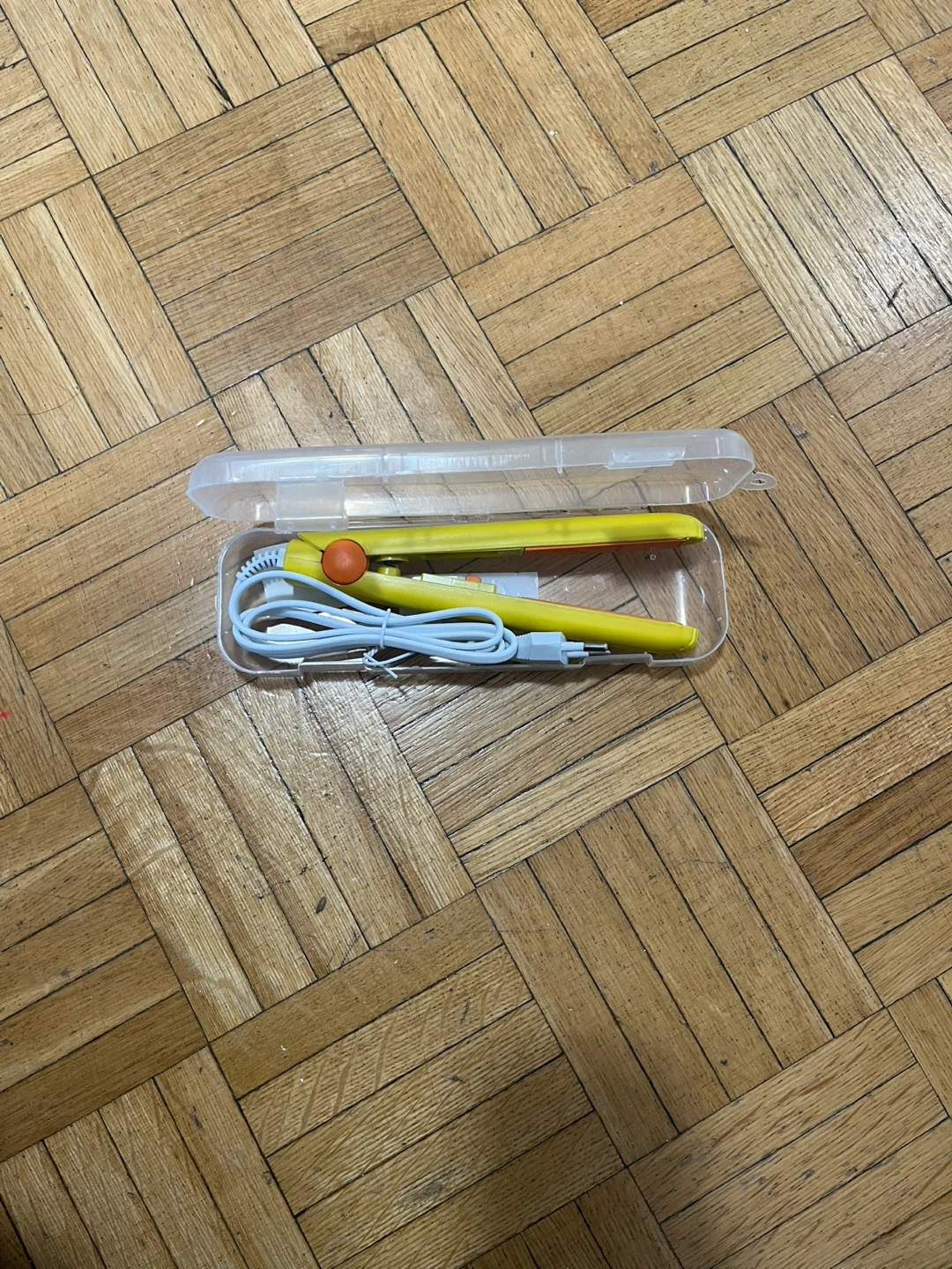 141Selling a mini hair straightener, perfect for travel or quick touch-ups! It comes in a vibrant yellow and includes its original case. Great for keeping your hair looking its best on the go and its a brand new