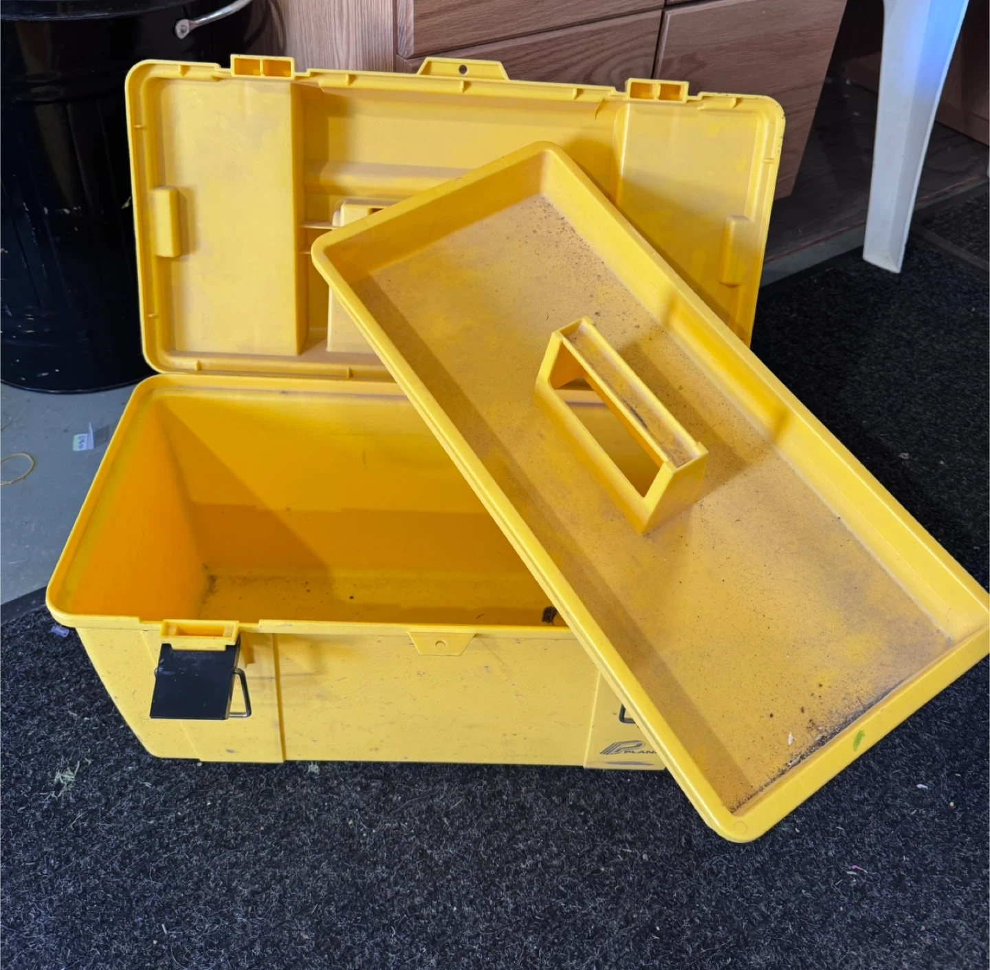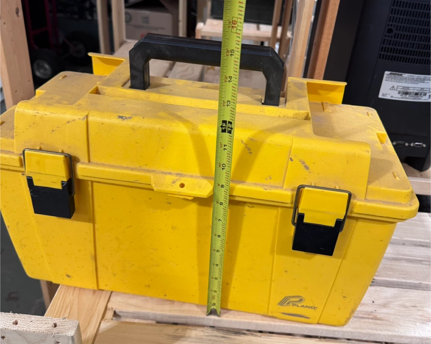Selling a yellow Plano tool box. It's in used condition with some signs of wear, but still very functional. Great for storing your tools and keeping them organized!