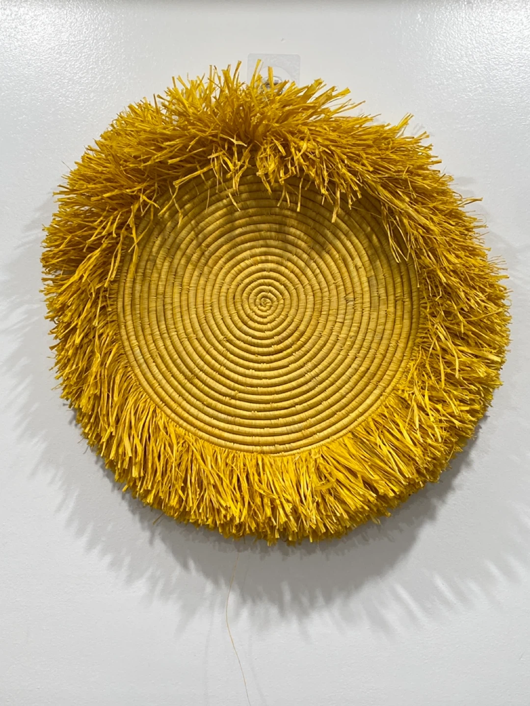 15Here's a lovely yellow woven wall decoration! It would look great in any room, adding a touch of sunshine and texture to your space