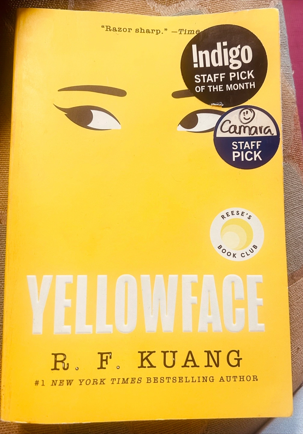 160Selling the book Yellowface by R.F. Kuang! It's an Indigo and Camara staff pick, and a New York Times bestseller. A darkly satirical thriller about greed, truth, identity, and art.