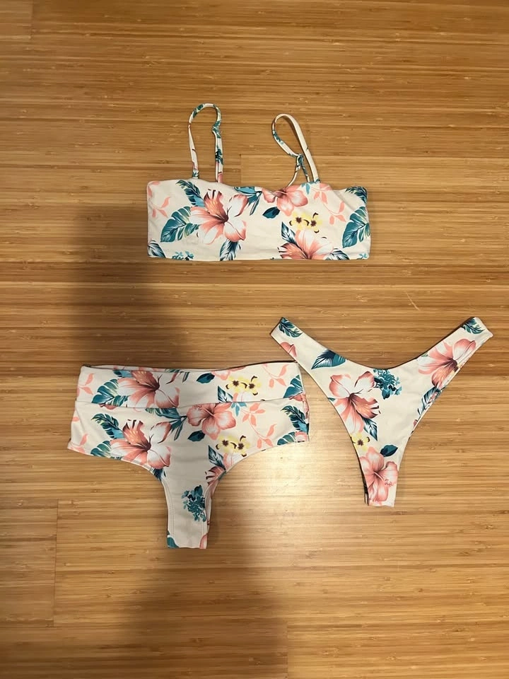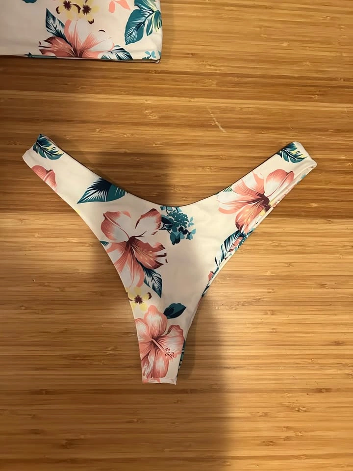 Bandeau style bathing suit with 2 different bottoms. Shein size L (fits more like a Medium). Pick up or meet in West/North Vancouver. Drop off on the North Shore or Vancouver for an extra $5.
