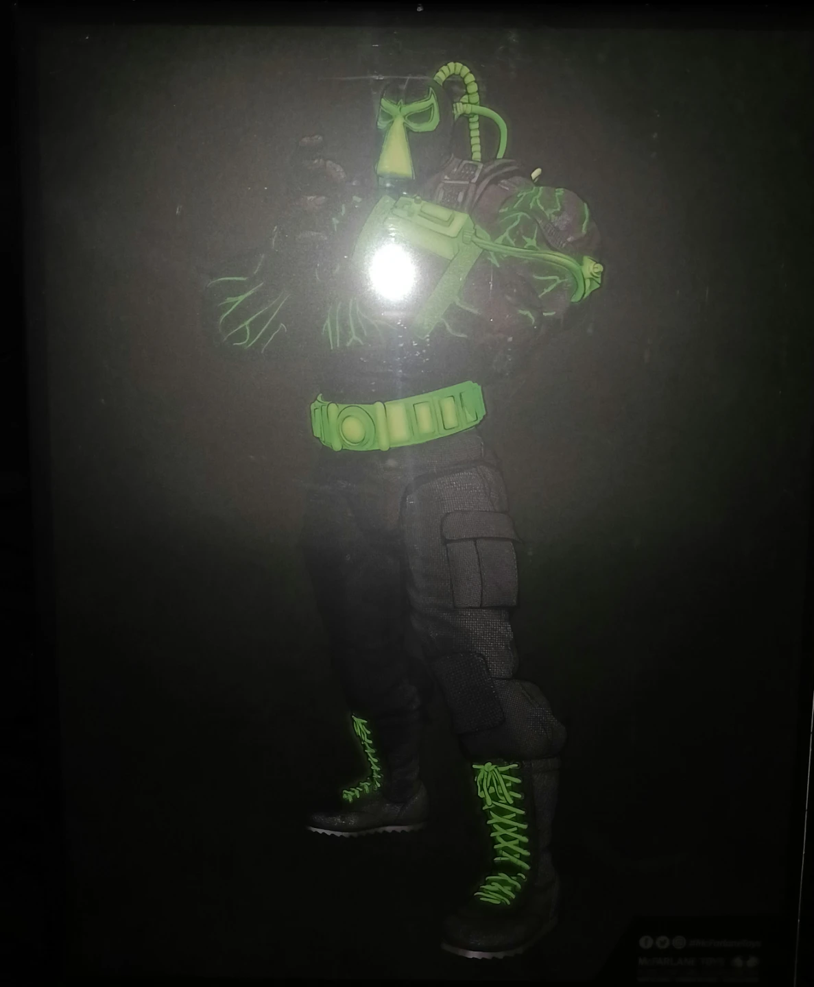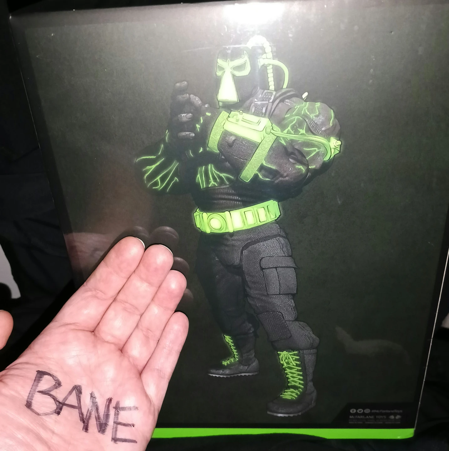 BANE is featured in Glow in the dark paint deco, Megafigs are large figures to match their 7” scale figure counterparts based off the DC Multiverse, Designed with Ultra Articulation with up to 22 moving parts for full range of posing and play, Includes figure base, authenticated art card and an art card display base, Featured in an exclusive designer box.