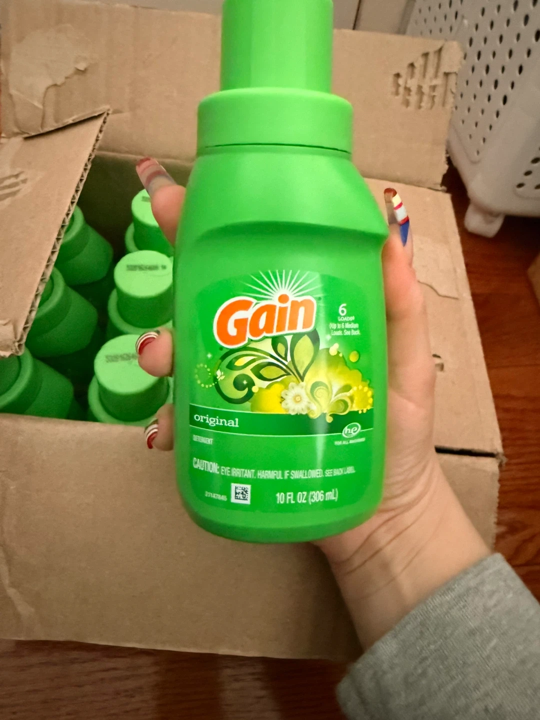 Get a fresh scent with this 12-pack of Gain Original liquid laundry detergent. Each bottle contains 10 fl oz (306 mL) of detergent. It's designed for use with medium loads, up to 6 medium loads per bottle. This liquid detergent works to get your clothes clean!