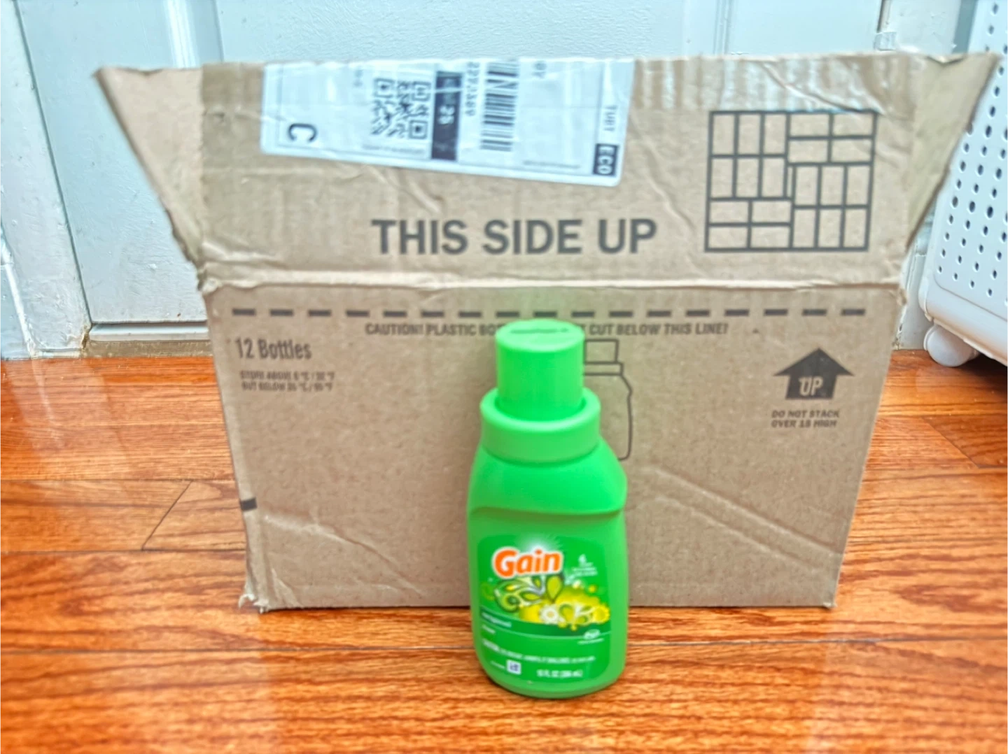 Get a fresh scent with this 12-pack of Gain Original liquid laundry detergent. Each bottle contains 10 fl oz (306 mL) of detergent. It's designed for use with medium loads, up to 6 medium loads per bottle. This liquid detergent works to get your clothes clean!
