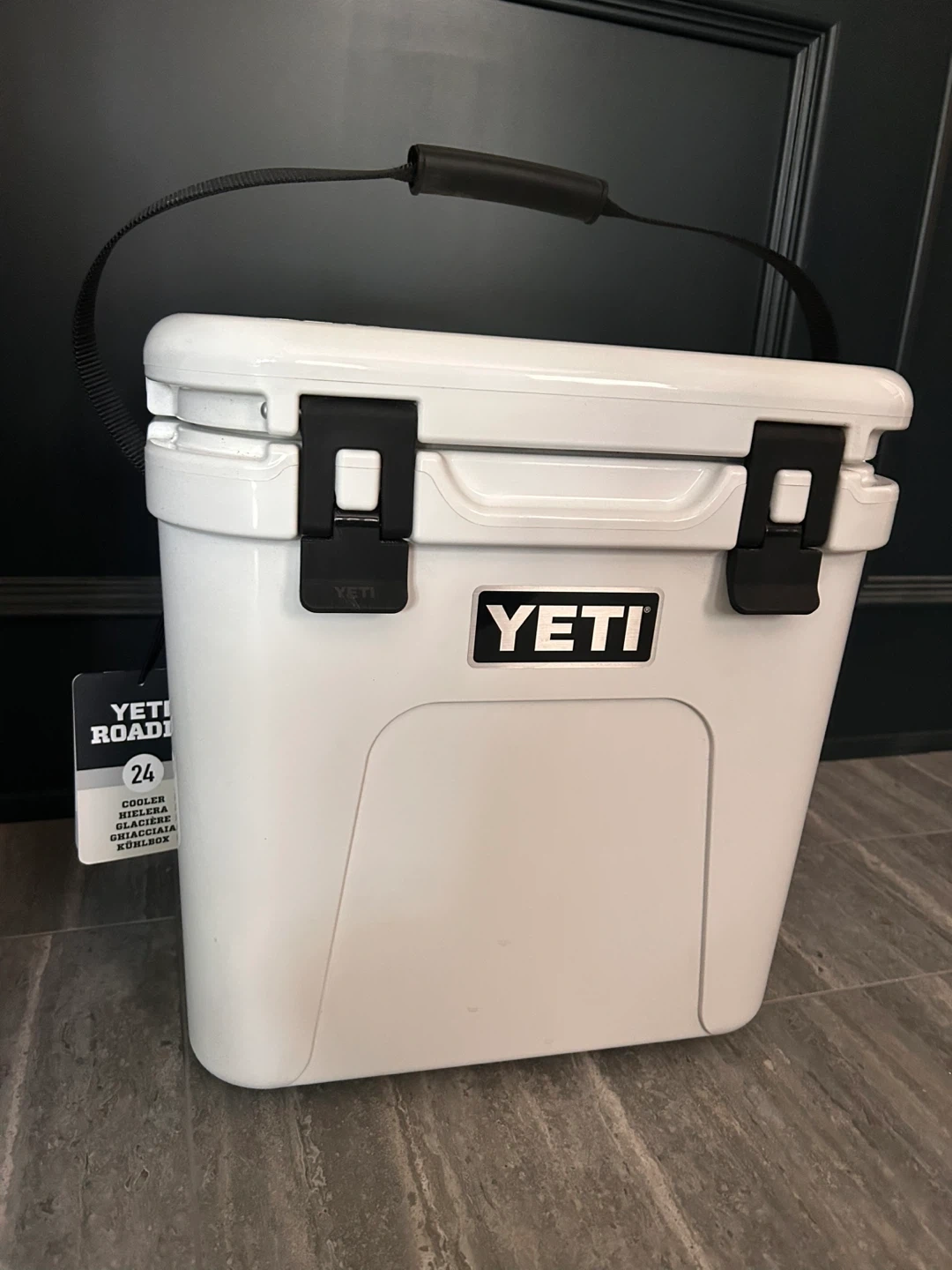 Selling a Yeti Roadie 24 Hard Cooler in white! It's brand new and never used and ready to keep your drinks and snacks cold on the go. Perfect for camping, picnics, or just keeping things cool in the backyard. Retails for $350!
