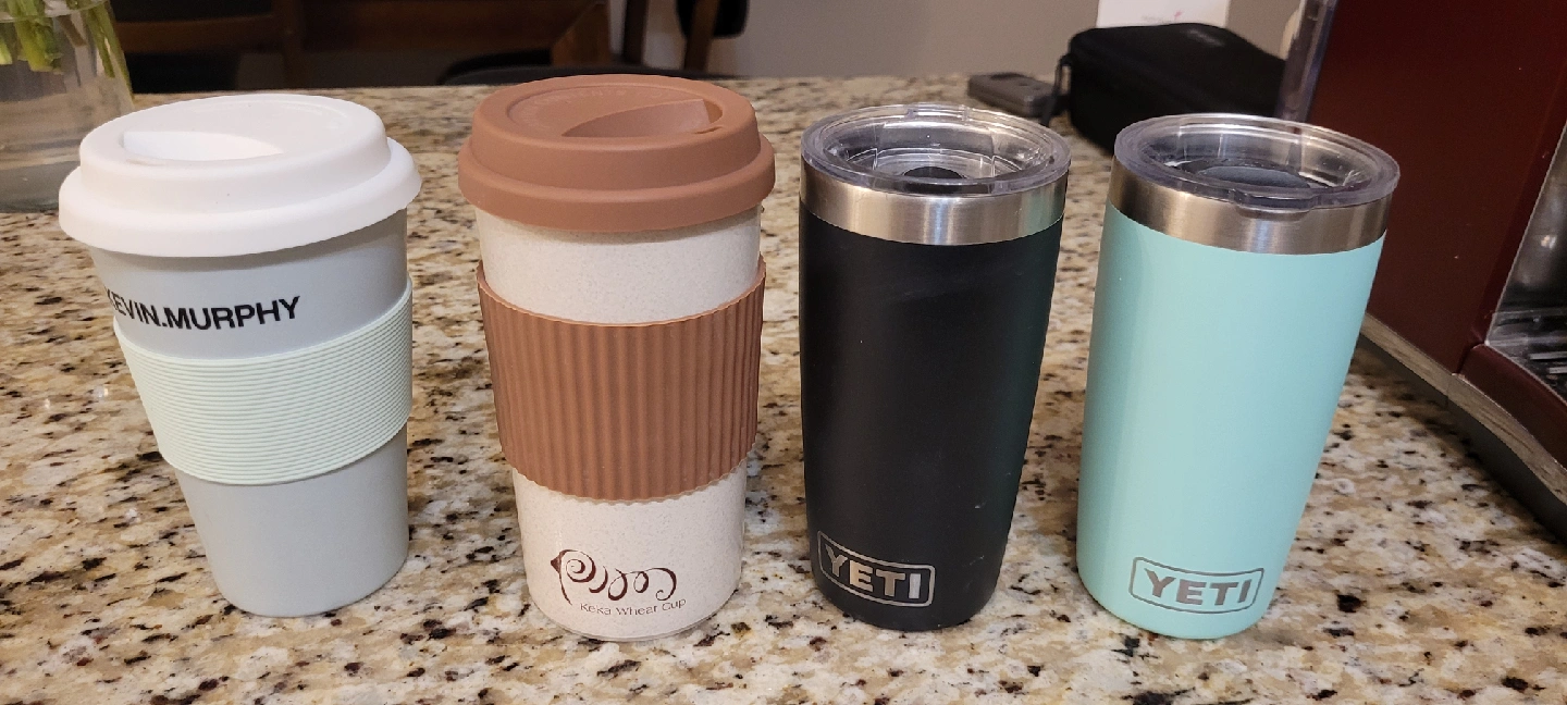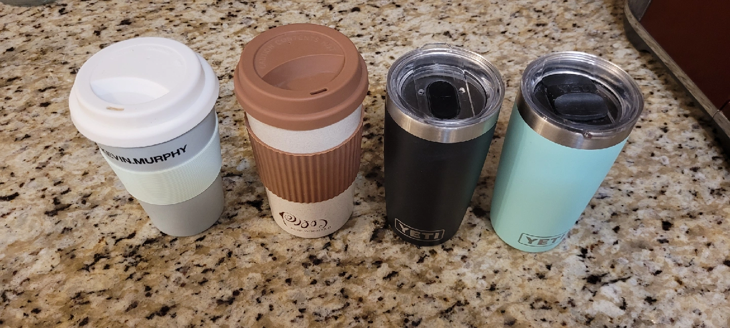 Yeti Tumblers - Black & Mint Green (10oz) + two coffee cups