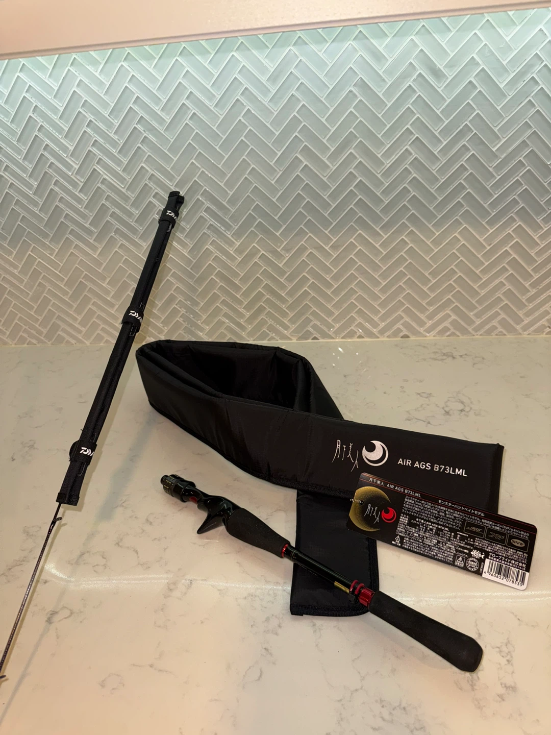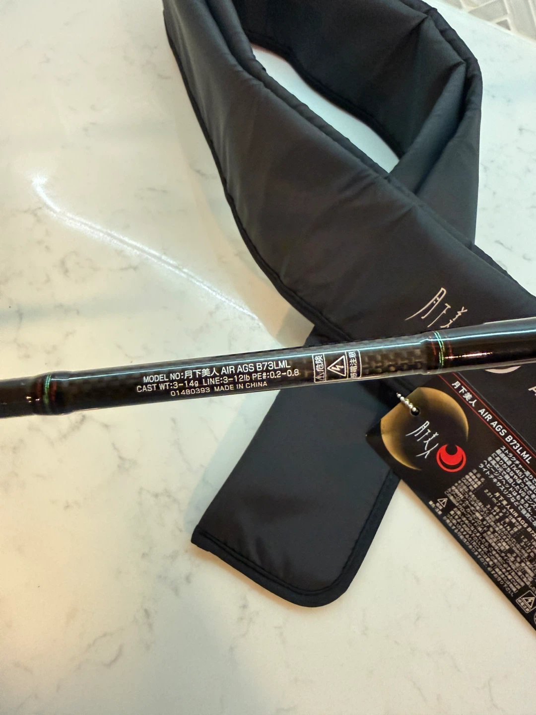 Selling a lightly used Daiwa AIR AGS B73LML fishing rod. It's in great shape and ready for your next fishing adventure! The rod comes with its original bag for protection and easy transport. Model number AIR AGS B73LML, Cast Wt: 3-12lb, Line: 3-12lb, PE: 0.2-0.8