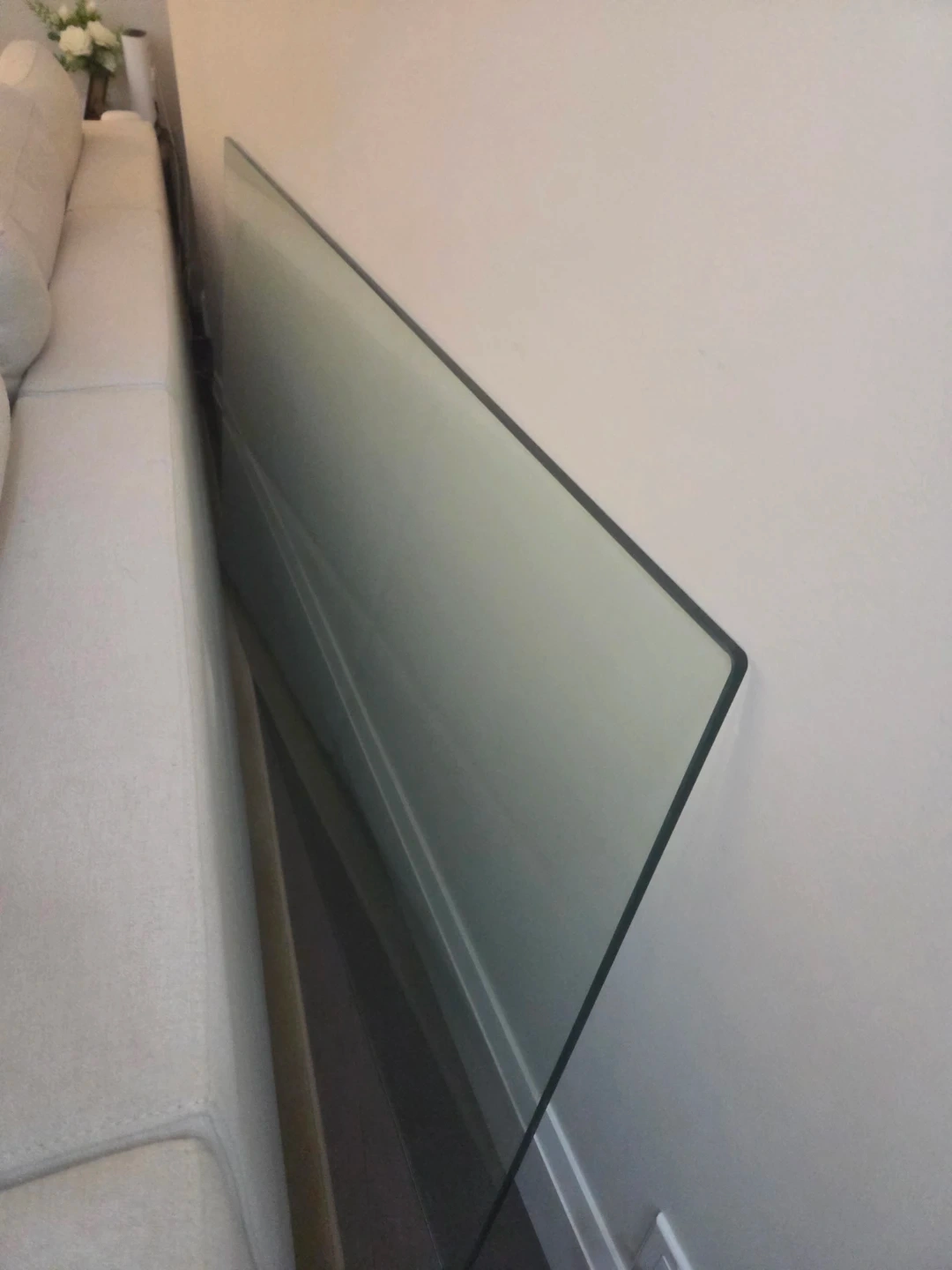 This is a tempered glass table top.. It has a sleek, modern design with a sturdy base. It's perfect for any dining space. It was bought on Wayfair. Lightly used. It does not come with the rest of the table. Only the glass table top being sold because we got a bigger table.