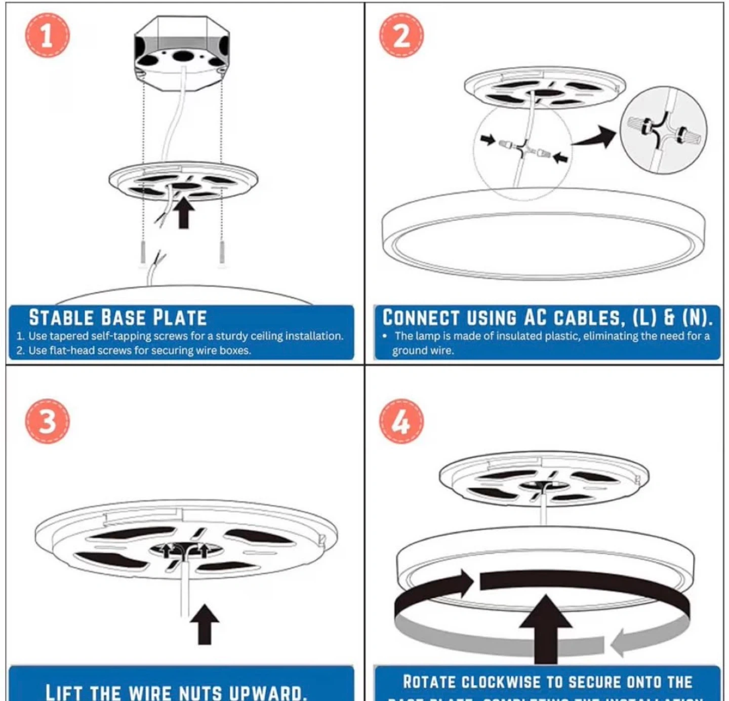 12-Inch Dimmable LED Flush Mount Ceiling Lights Fixture, 24W