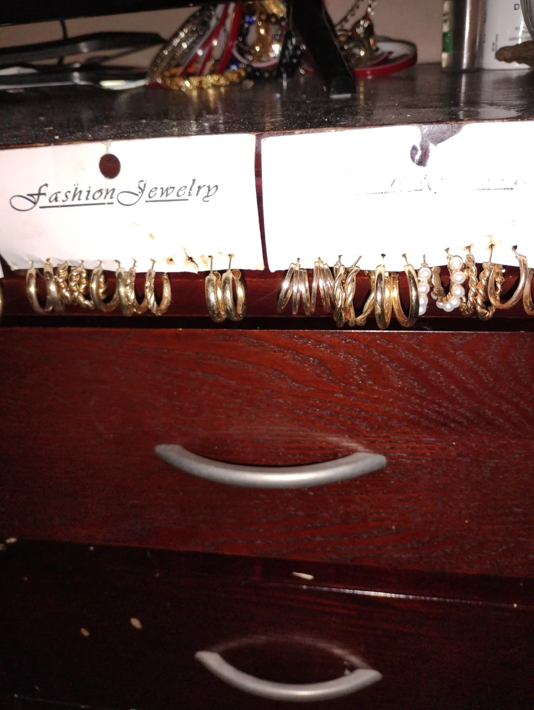 This is a set of fashion jewelry earrings. Includes a pack of assorted gold-toned hoops and a pack of silver-toned hoops from Joe Fresh. These earrings are suitable for everyday wear.