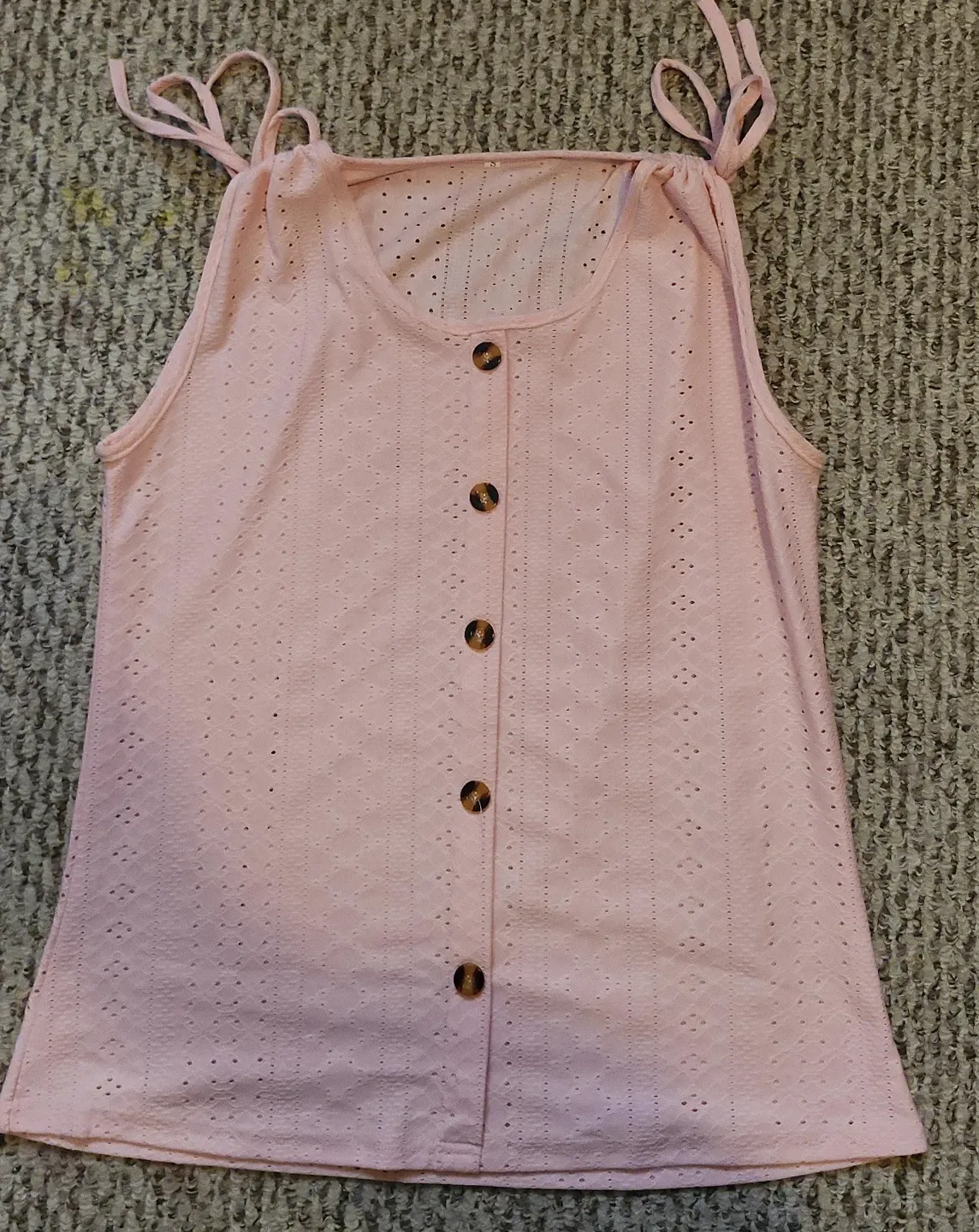 Buy & SellPink Eyelet Tank TopPink Eyelet Tank Top$4Light pink eyelet tank top with button front and tie straps. It's a sleeveless top.ConditionLike newSizesmallWHERE TO MEET332 Edgehill DrView MapSELLERverifiedSavannah PardyLetitia Heights650 reviews0 chats·0 favorites·1 viewsSEND CHAT TO SELLERHi Savannah Pardy! I’m interested in your listing.Hi Savannah Pardy! I’m interested in your listing.Get the Karrot app to chatSign In to chat
