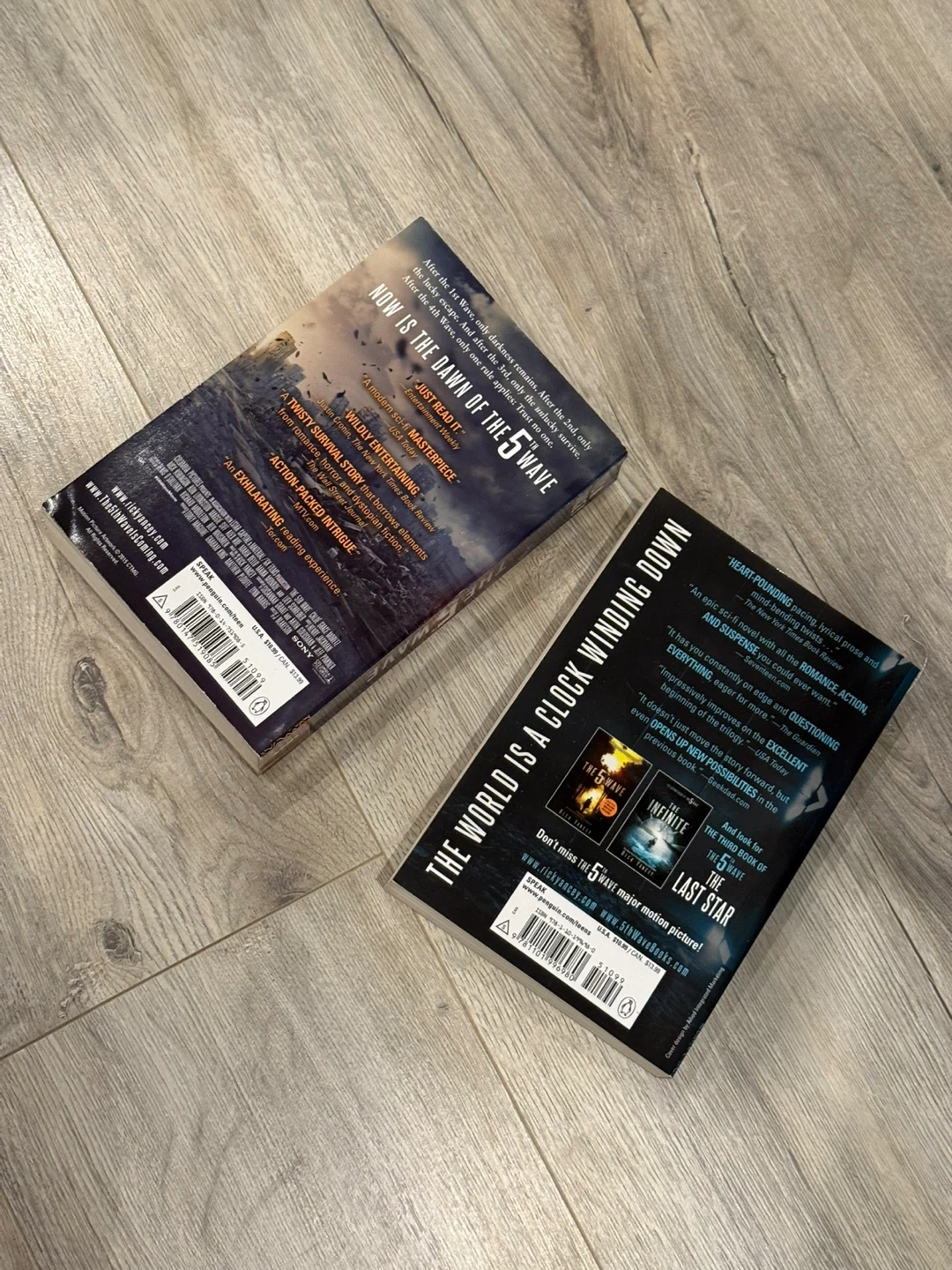 These are paperback copies of The 5th Wave and The Infinite Sea, both written by Rick Yancey. They're part of a bestselling series. Fans of dystopian young adult novels will enjoy these titles.