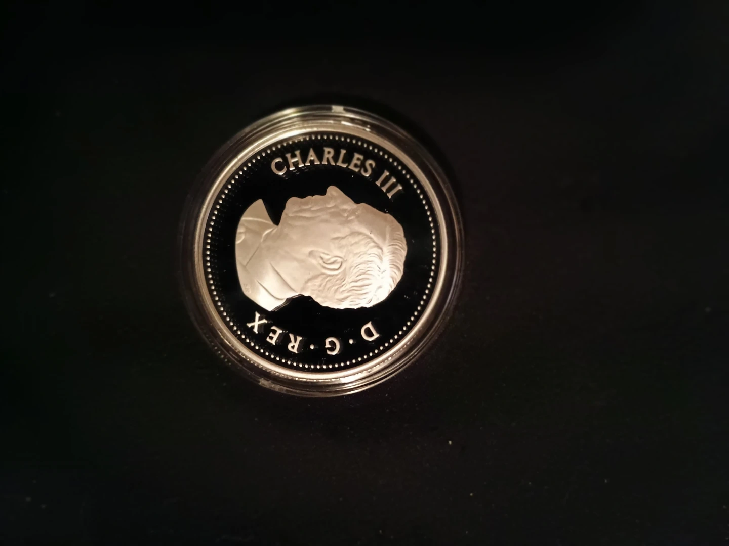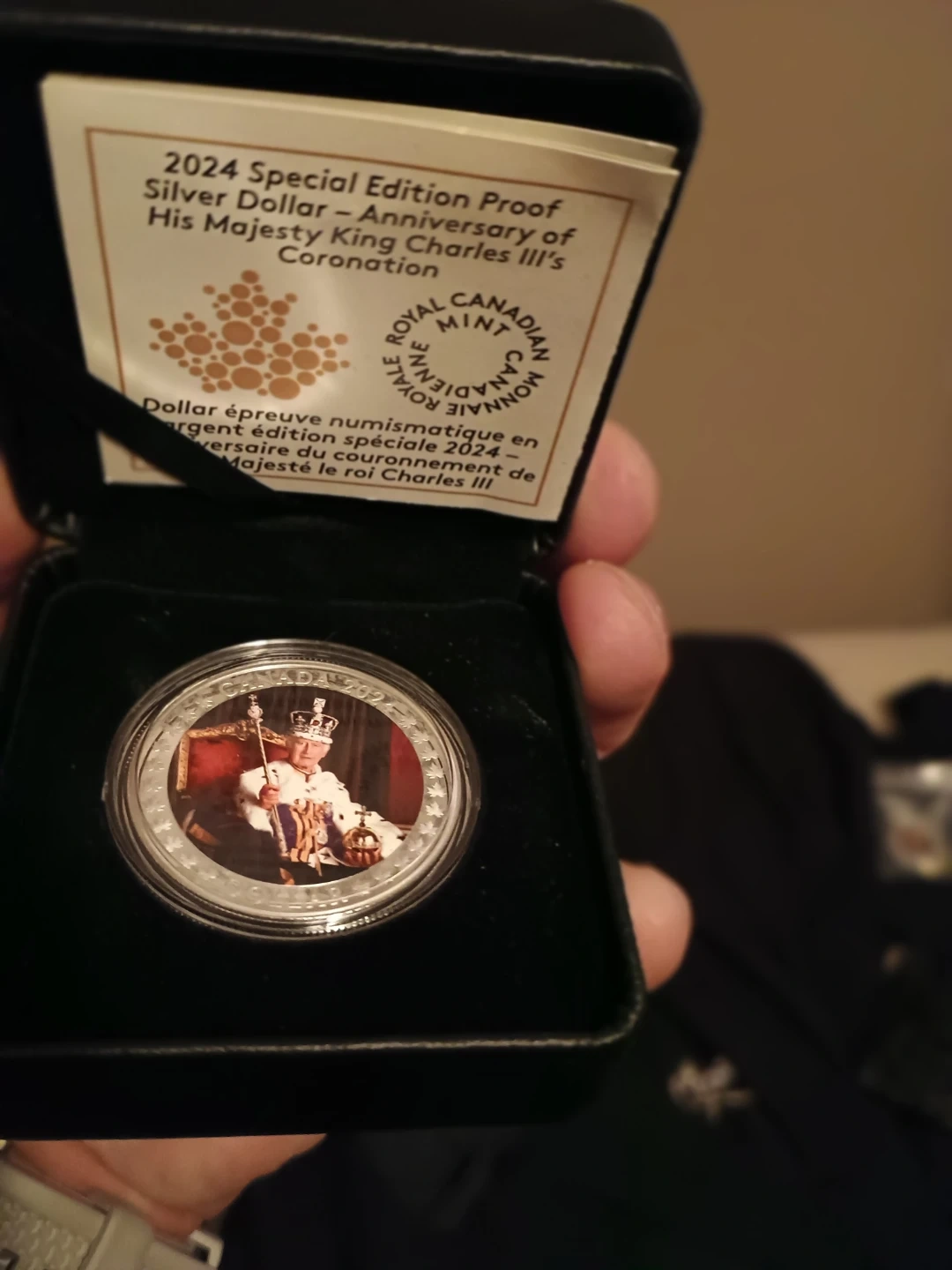 This is a 2024 Special Edition Proof Silver Dollar commemorating the Coronation of His Majesty King Charles III. It includes the original box and certificate. This coin features a detailed image of the King.