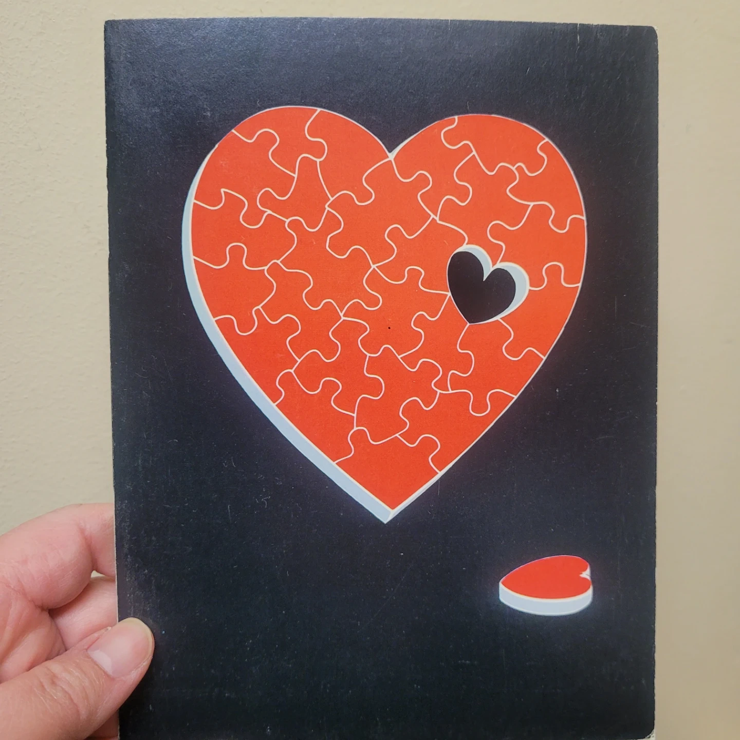 This is a card 'The Shape of Things to Come.' It has a heart-shaped puzzle design on the cover with one piece missing. The inside cover features the phrase 'The shape of things to come.' This would be great for someone who enjoys journaling or creative writing.