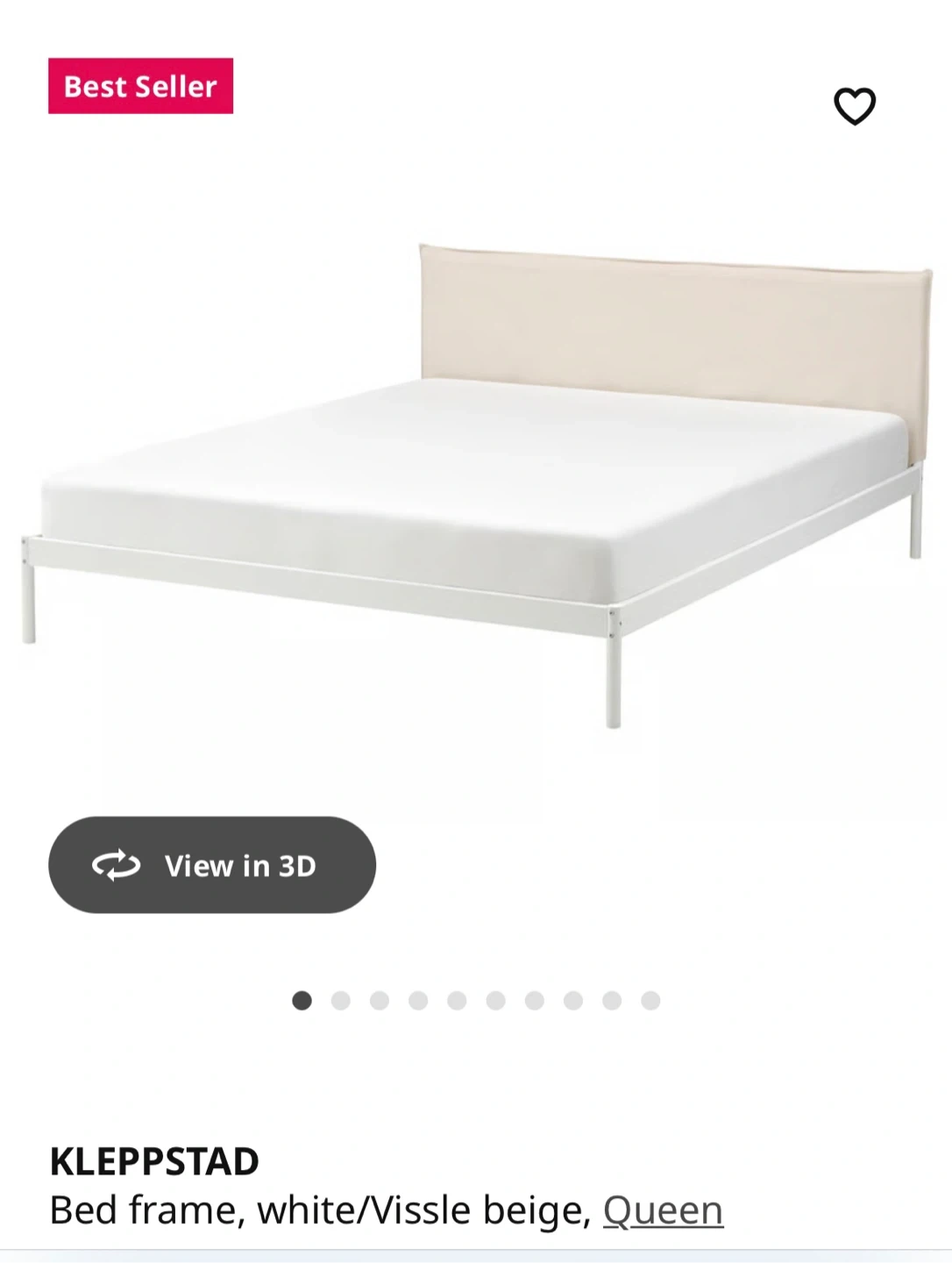 This is an IKEA KLEPPSTAD queen bed frame in white with Vissle beige headboard. It's a sturdy and stylish addition to any bedroom. The bed frame provides reliable support for your mattress.