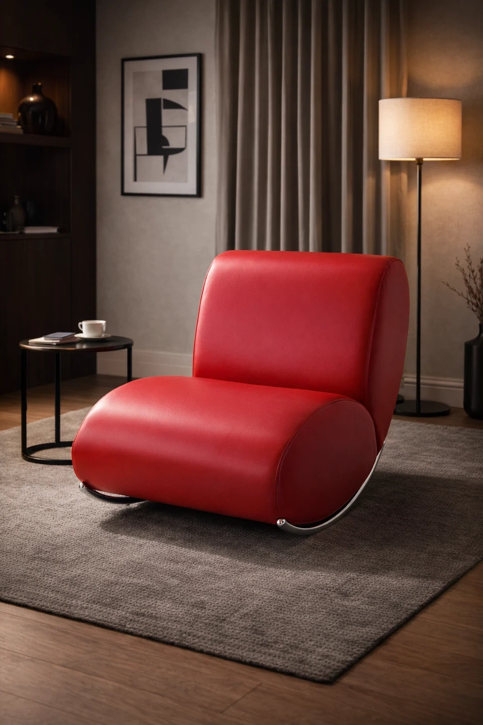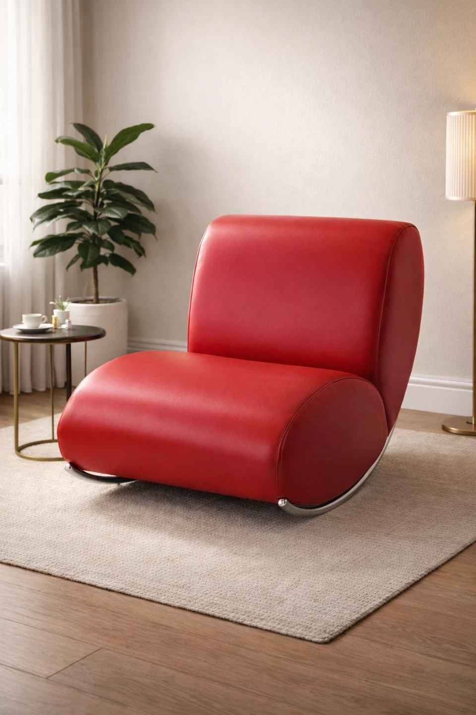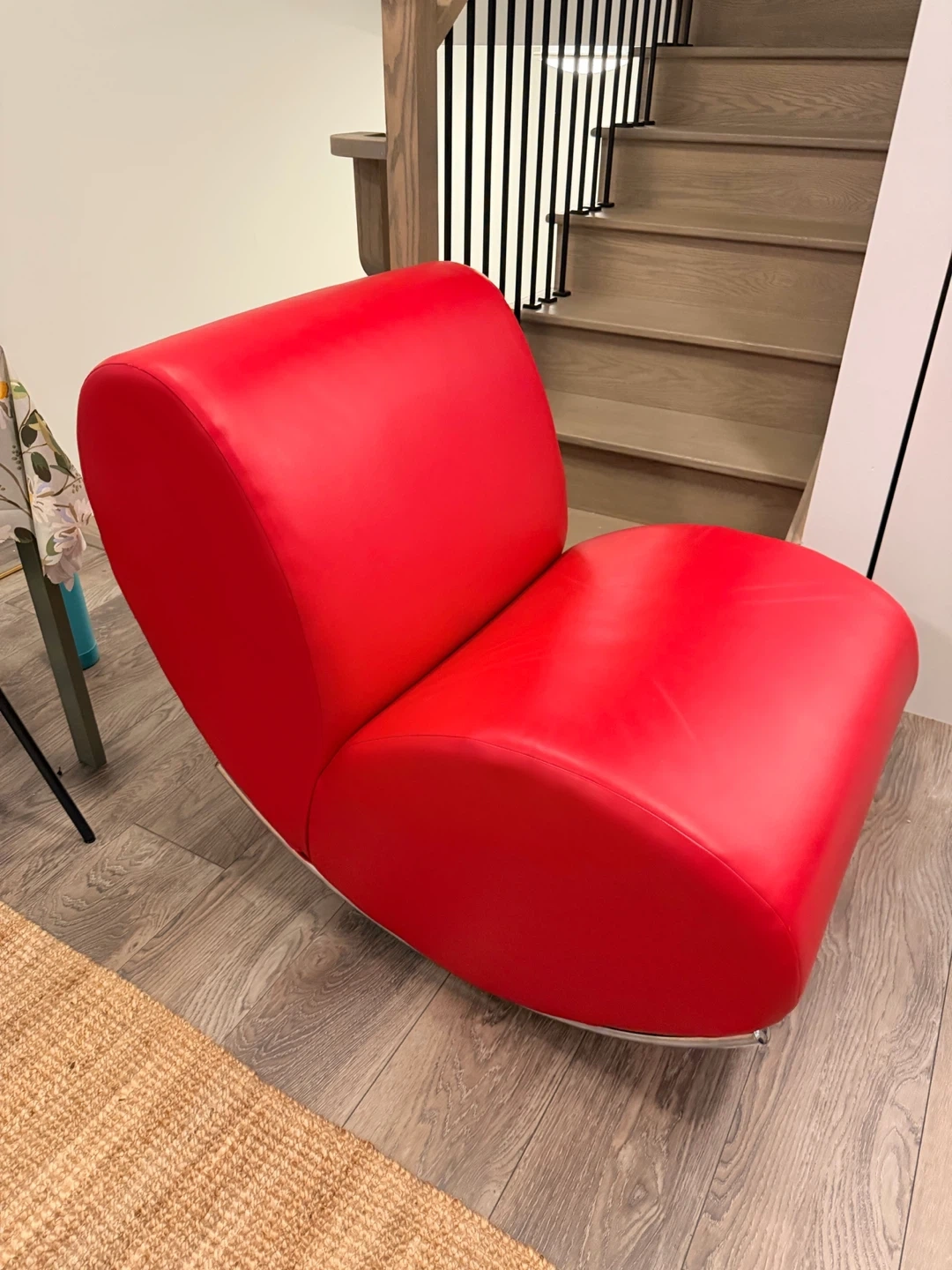 EQ3 “James” Rocking Chair – Red Vinyl – Modern Sculptural Accent
