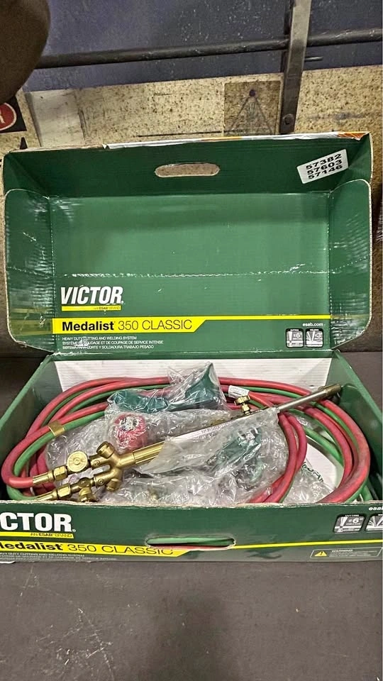 Selling a new Victor Medalist 350 Classic, heavy duty cutting and welding system, designed for heavy-duty applications. It’s a complete kit ready to tackle various welding and cutting tasks. Heavy-duty performance, complete system, ready to use. This welding kit is just waiting for a new home. If the ad is up, the item is available!