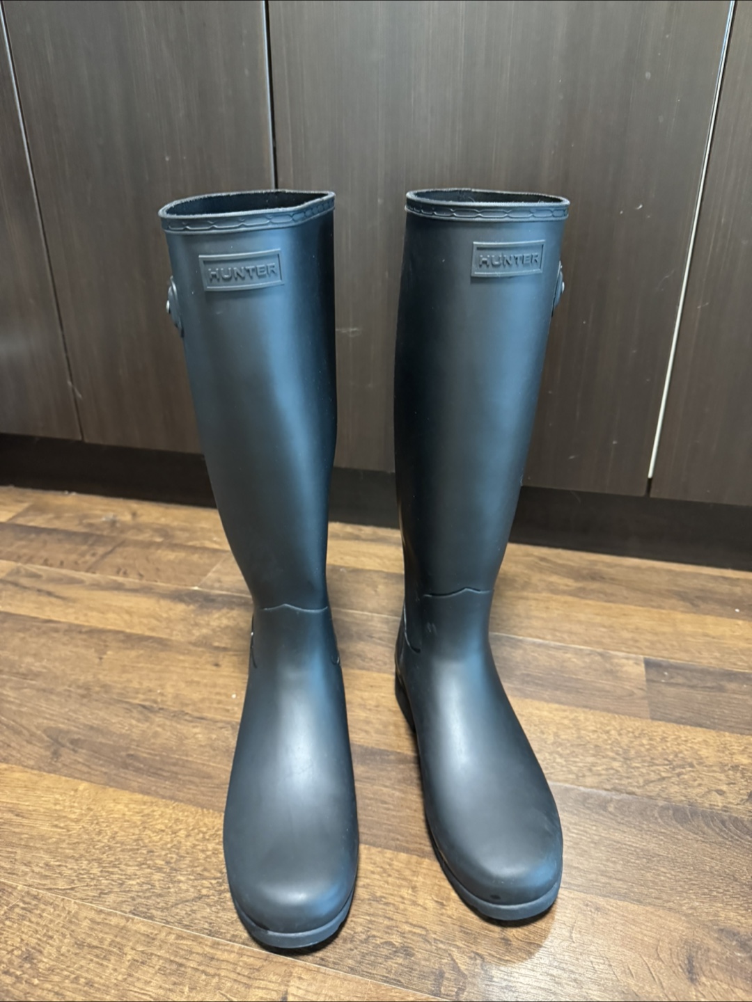 Hunter rain boots in great condition! Perfect for rainy days and outdoor adventures. Size 9. Only worn twice. Nearly new. Retails $220 before tax