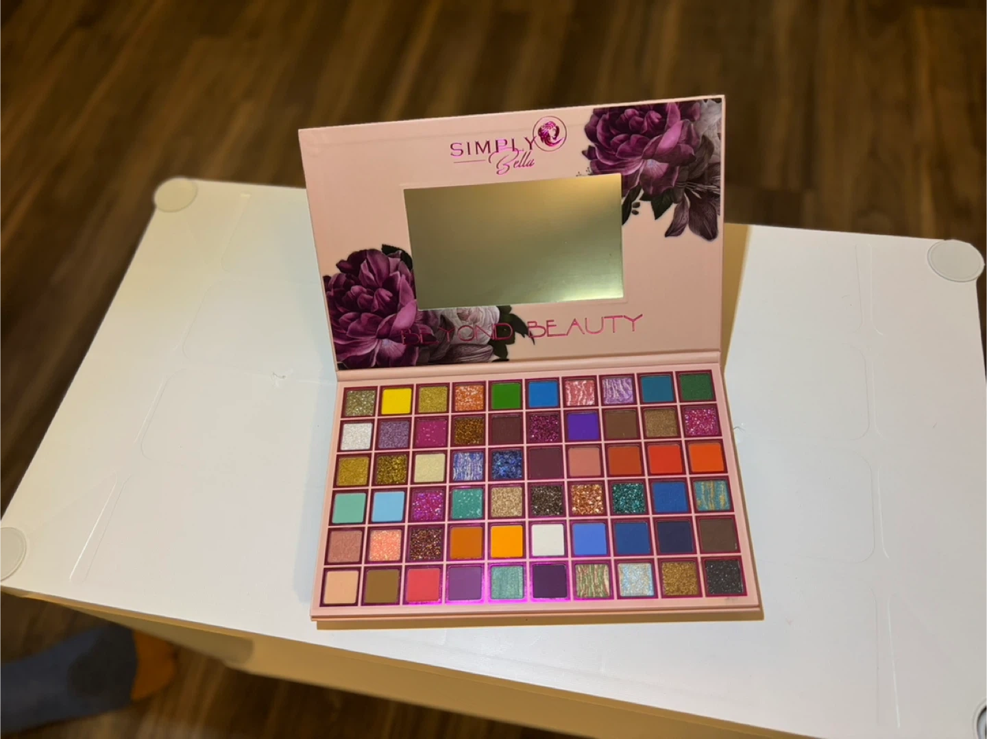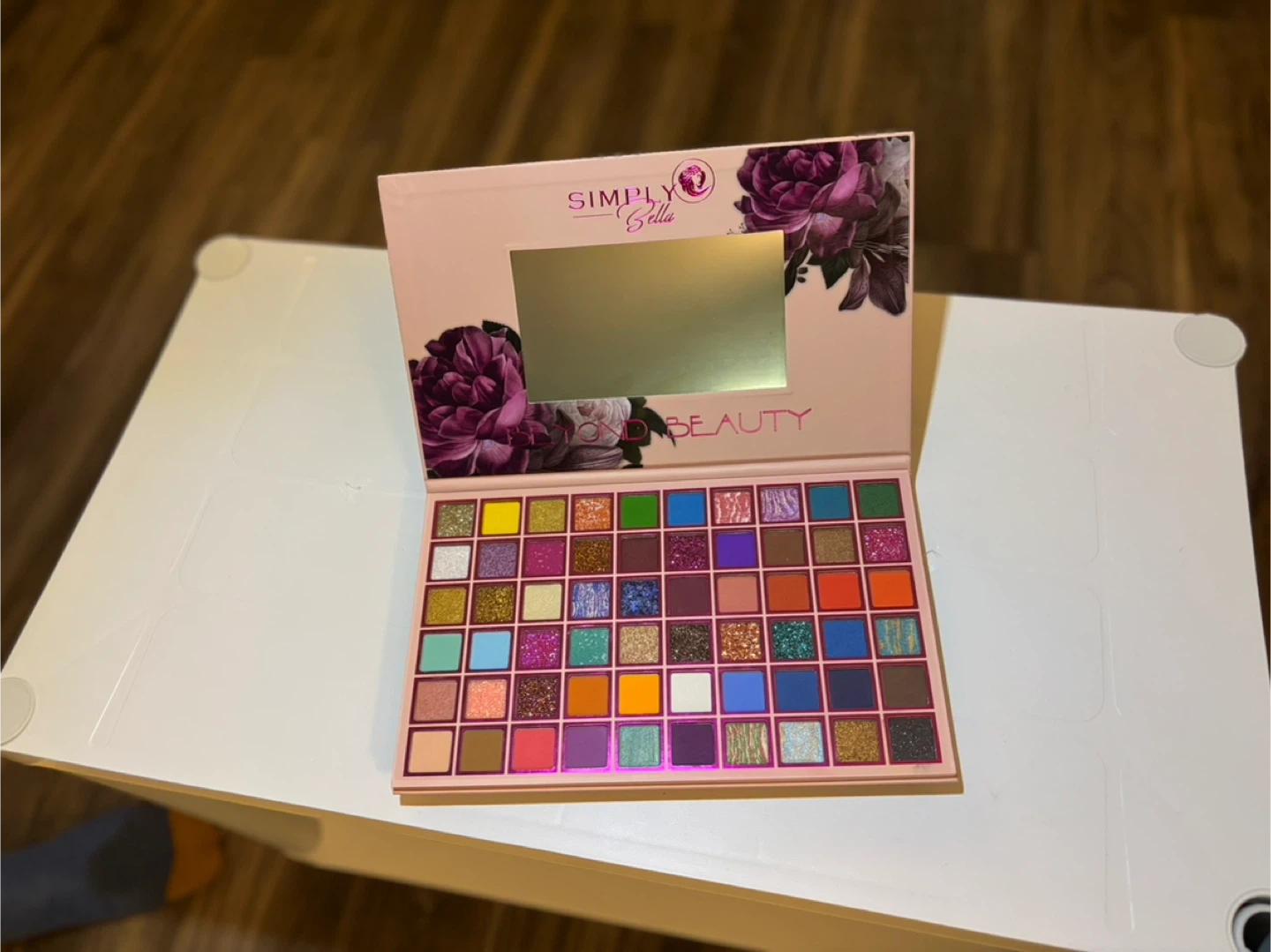 This is a Simply Stella 42 color eyeshadow palette. It features a variety of matte and shimmer shades. Many colors are highly pigmented and blendable!