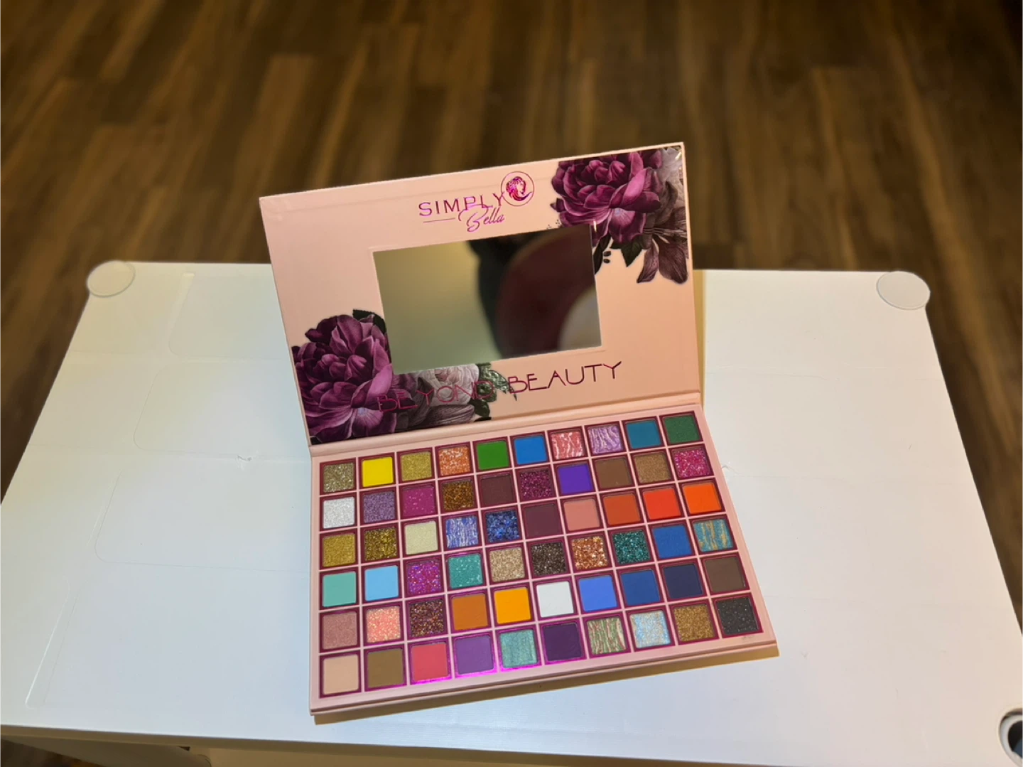 This is a Simply Stella 42 color eyeshadow palette. It features a variety of matte and shimmer shades. Many colors are highly pigmented and blendable!