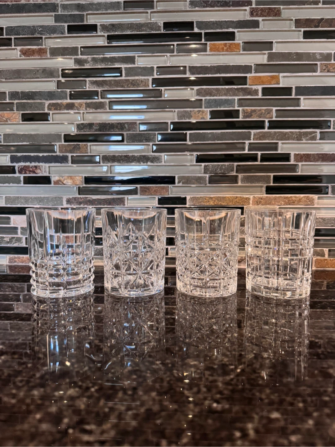 Set of 4 Clear Cut Crystal Glasses
