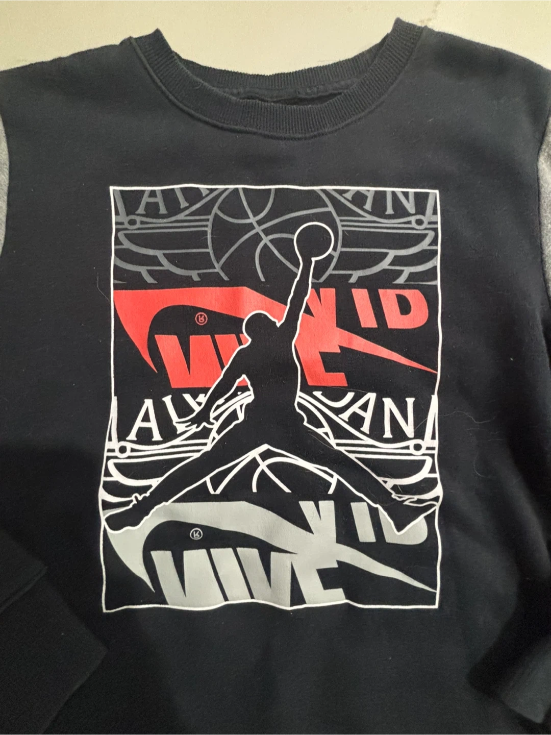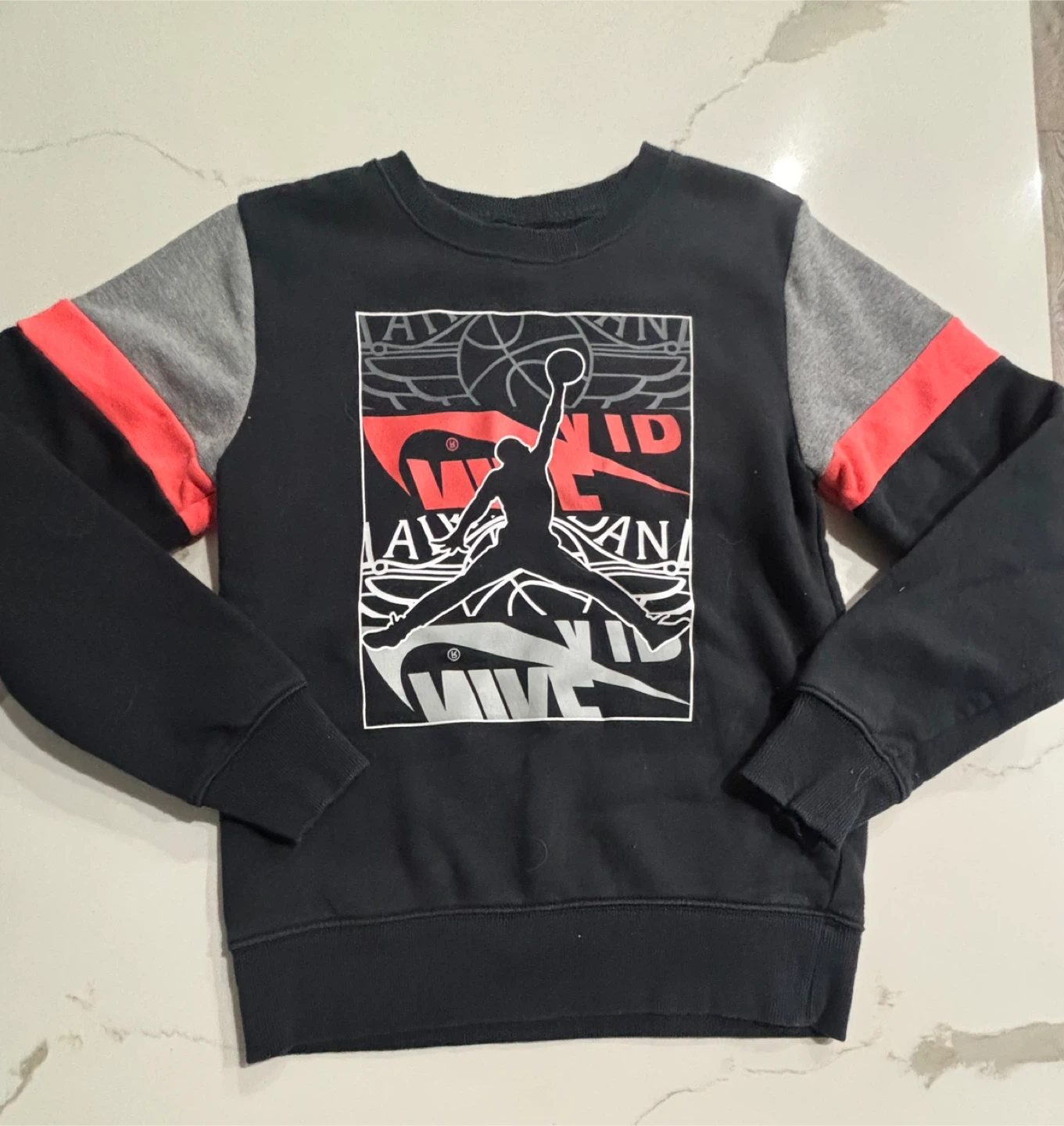 Excellent Used Condition Jordan crewneck sweatshirt with a graphic print. Size medium, fits 10-12 years.