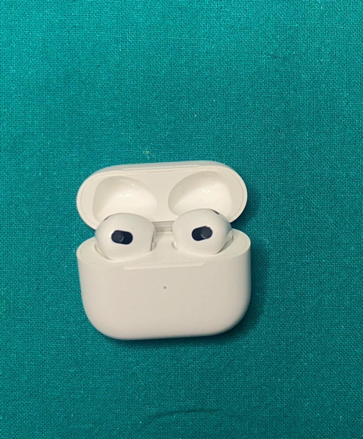 These are Apple AirPods (3rd generation) in white. They come with the original charging case and a charging cable. Great for listening to music and taking calls on the go!