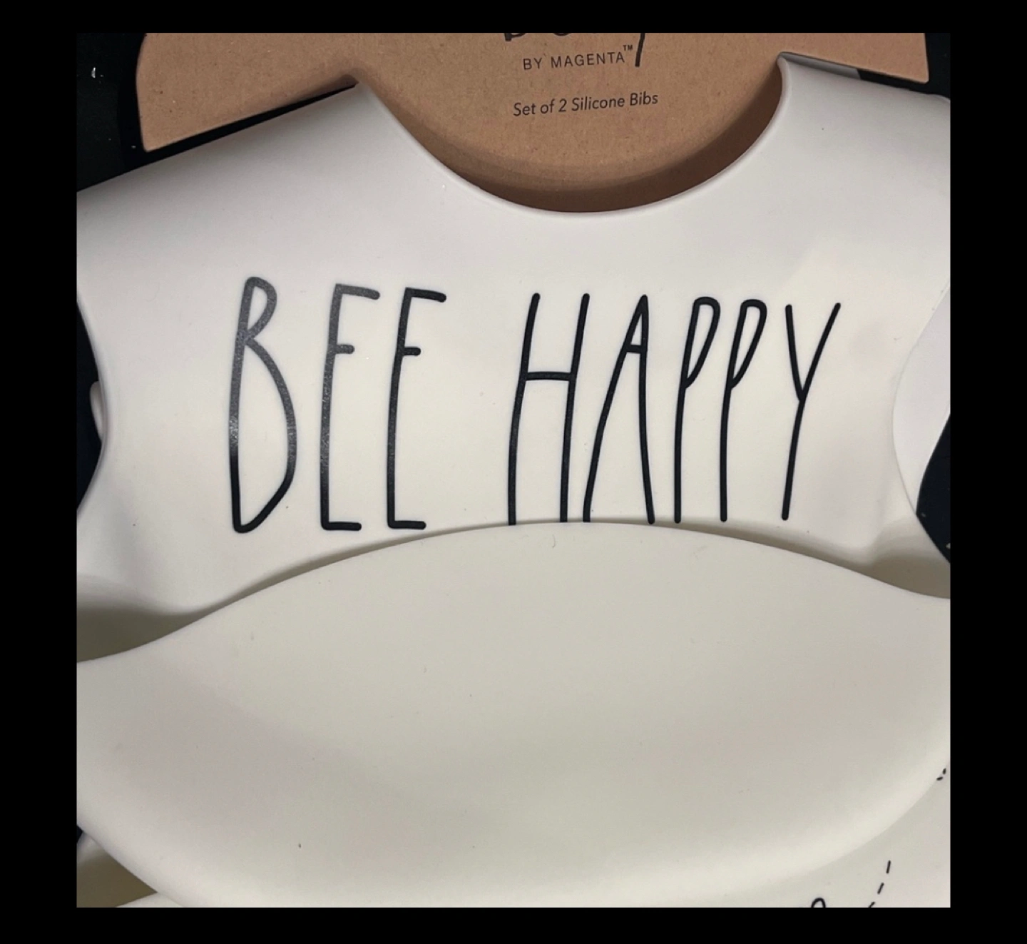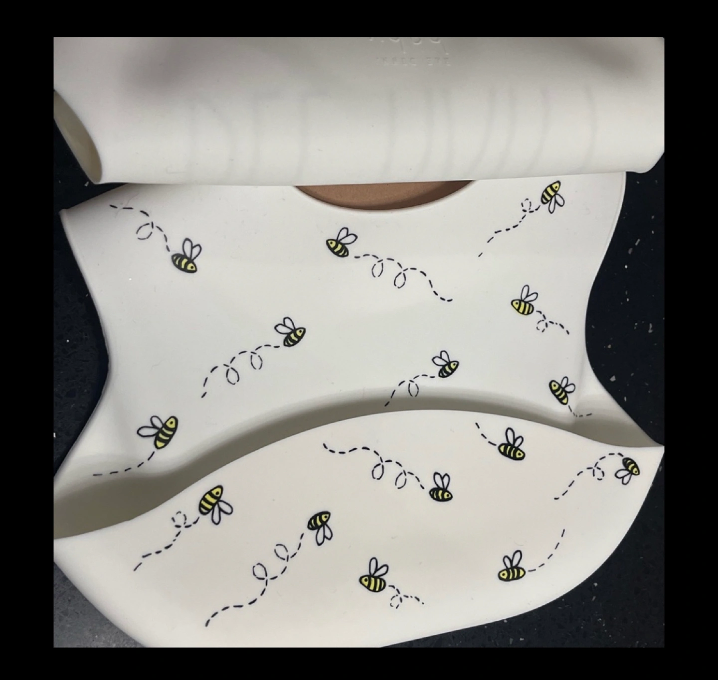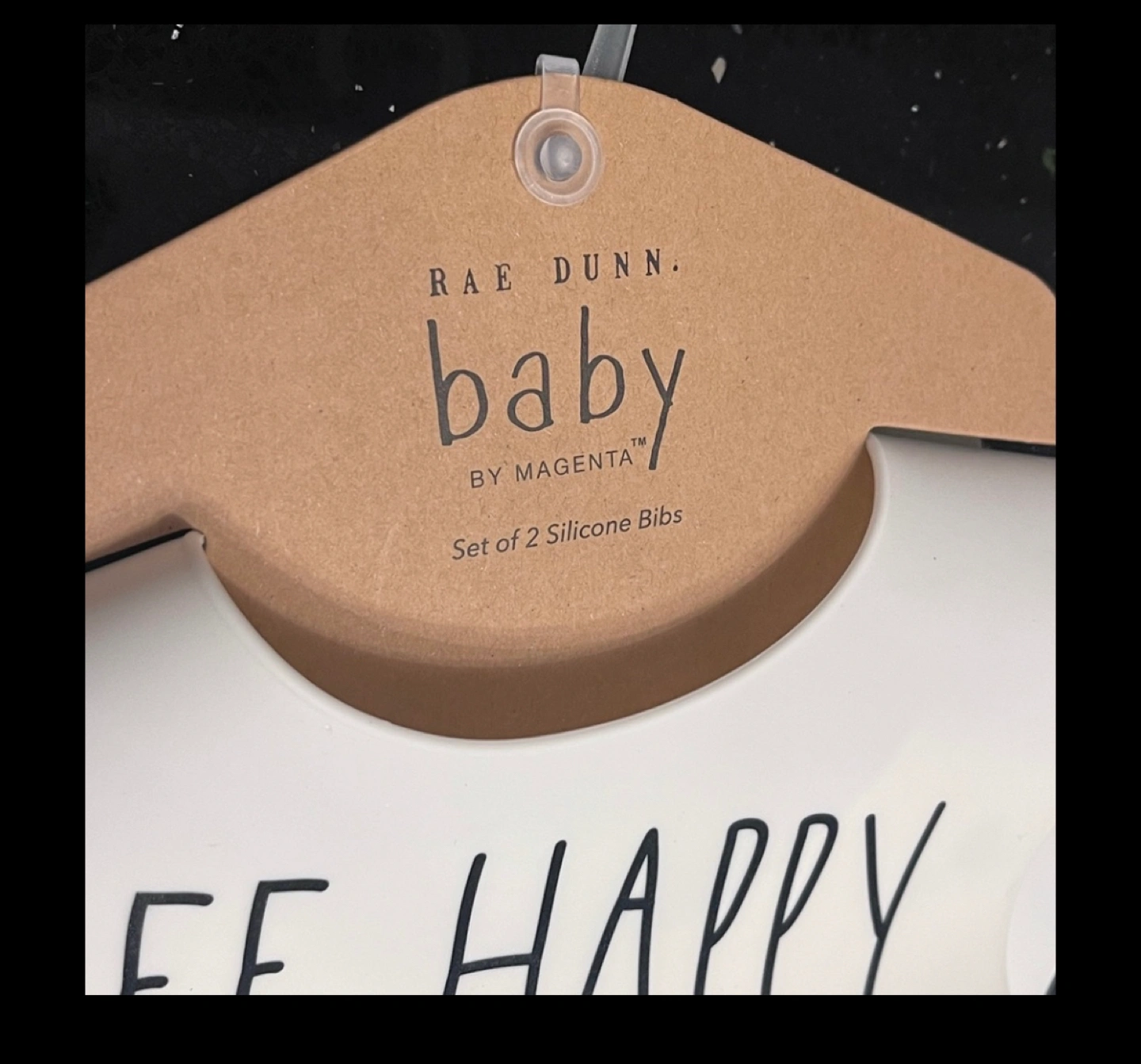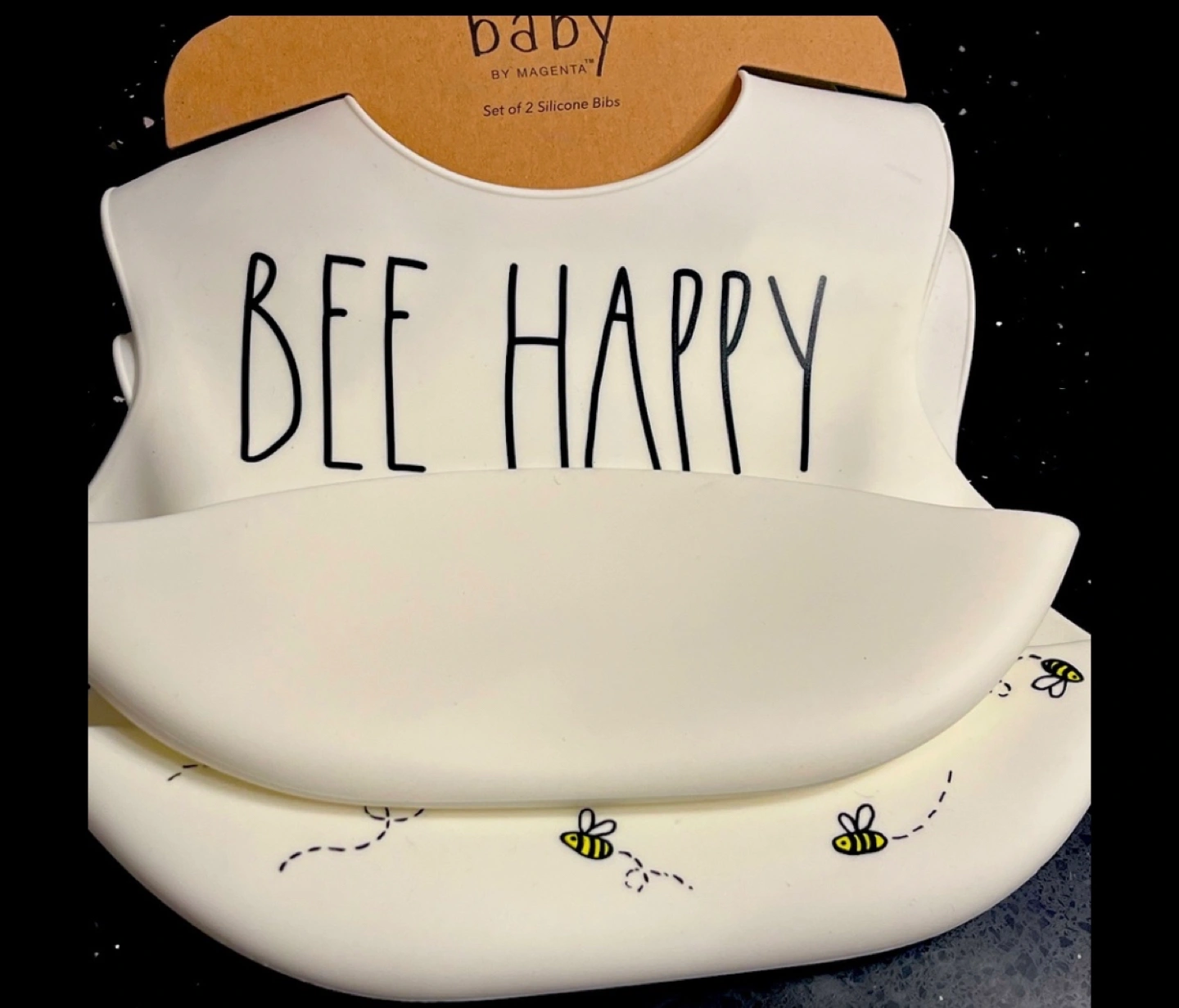 New with tags, this super cute and hard to find unisex set of 2 silicone bibs is up for grabs.