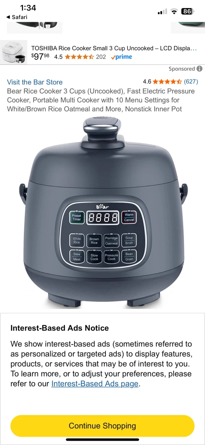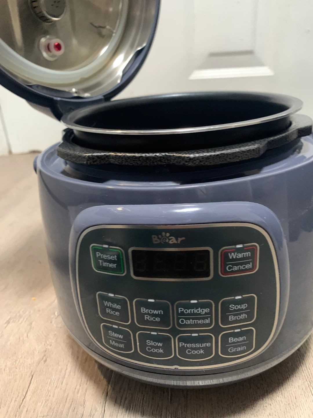 Selling a Bear Rice Cooker that cooks up to 3 cups of uncooked rice. It's a fast electric pressure cooker, making meal prep a breeze! It has 10 menu settings for white/brown rice, oatmeal, and more. It also features a nonstick inner pot for easy cleanup