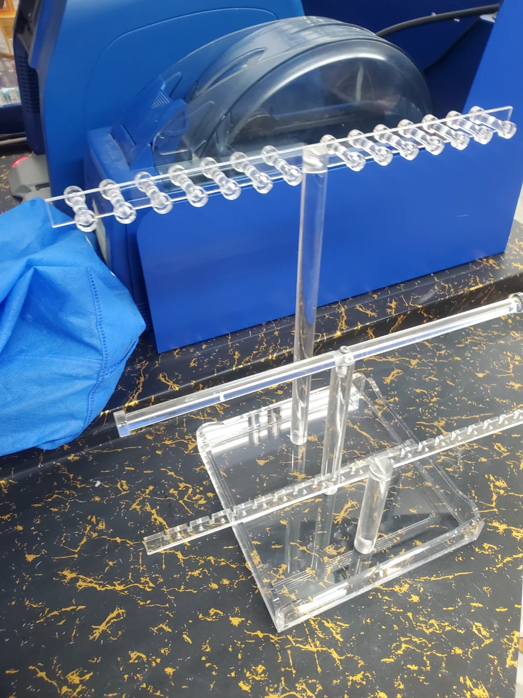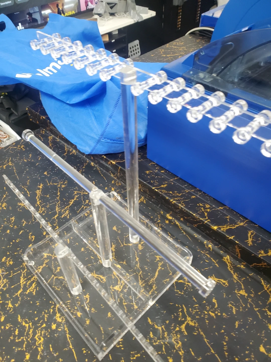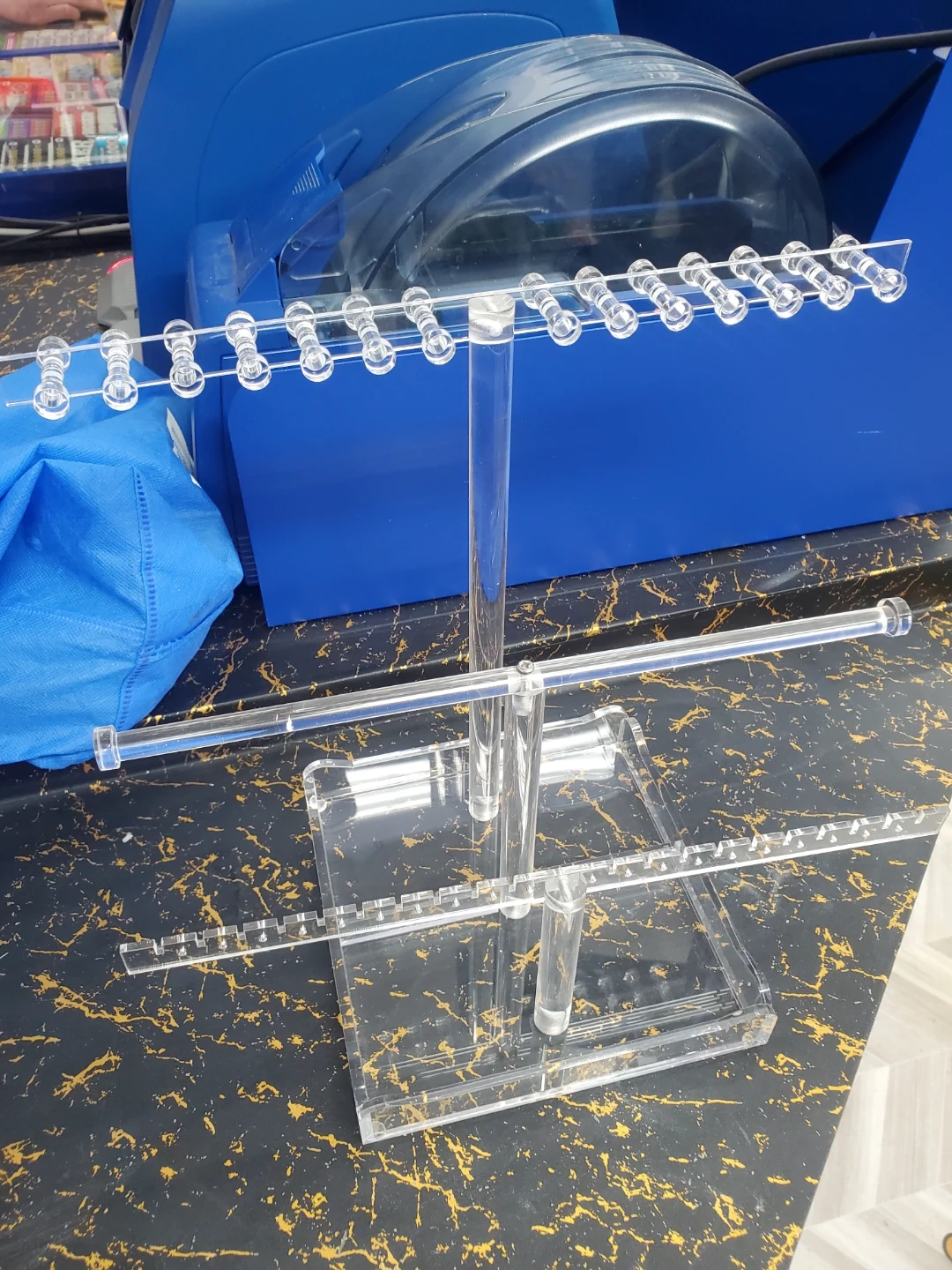 This clear acrylic display stand is perfect for showcasing necklaces and other jewelry. It features multiple tiers with ample space for hanging your favourite pieces. Great for organizing your collection or for retail display!