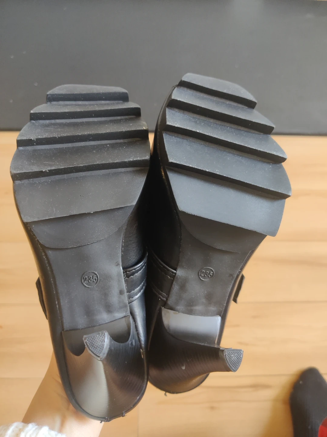 Brand New Genuine Leather S-Long Black Heeled Mules - Size 23.5