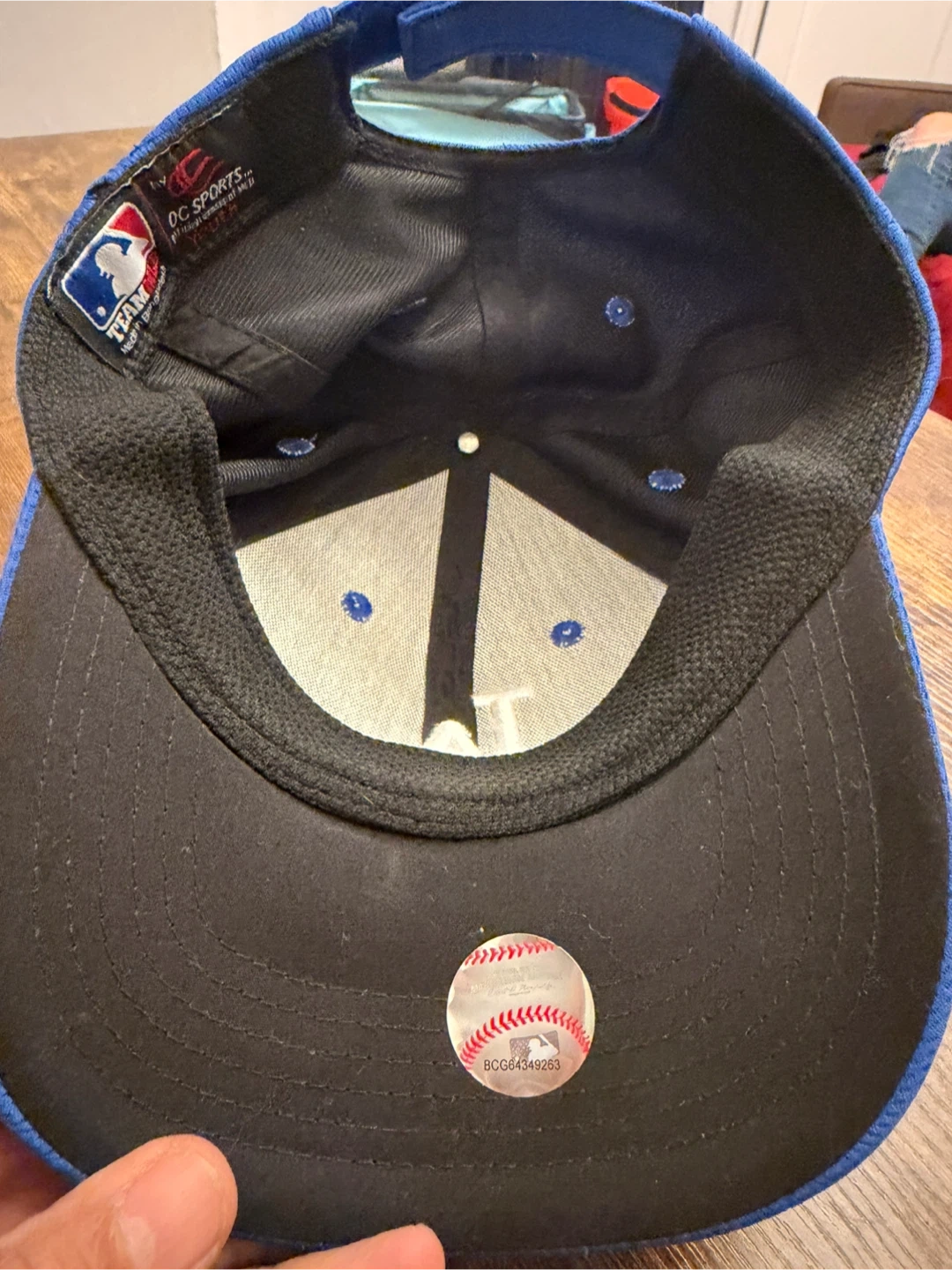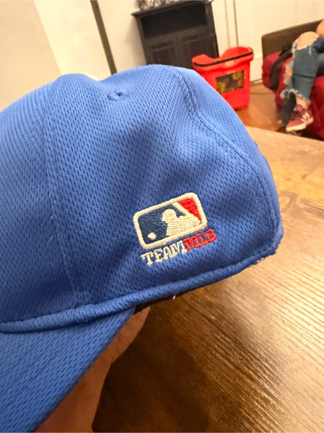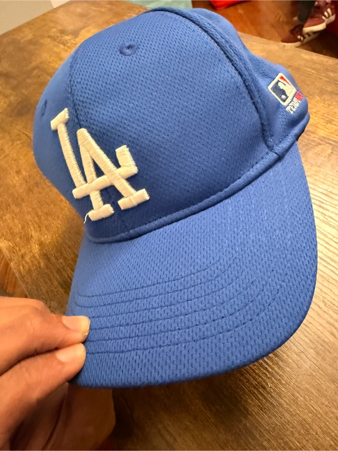 This is a blue Los Angeles Dodgers baseball cap with the iconic LA logo embroidered on the front. It features a textured fabric and a standard brim. The MLB Team logo is visible on the side.