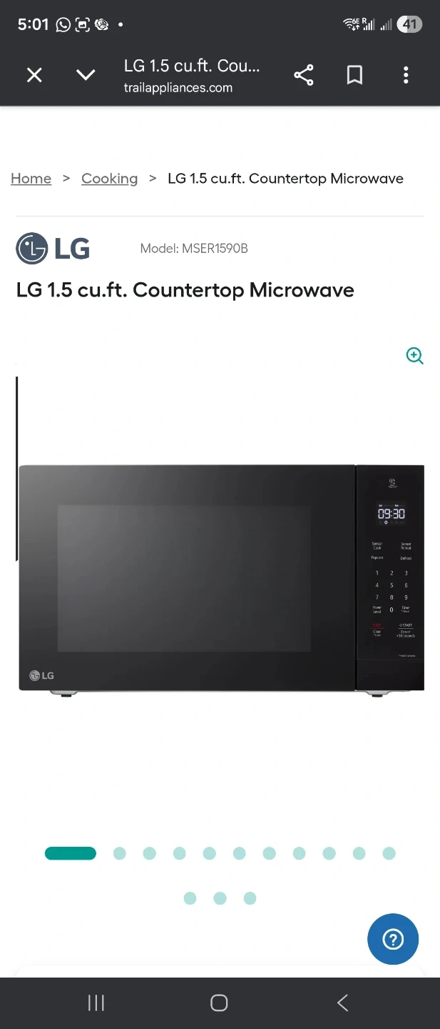 LG countertop microwave. It's black and has a digital display with various cooking options.