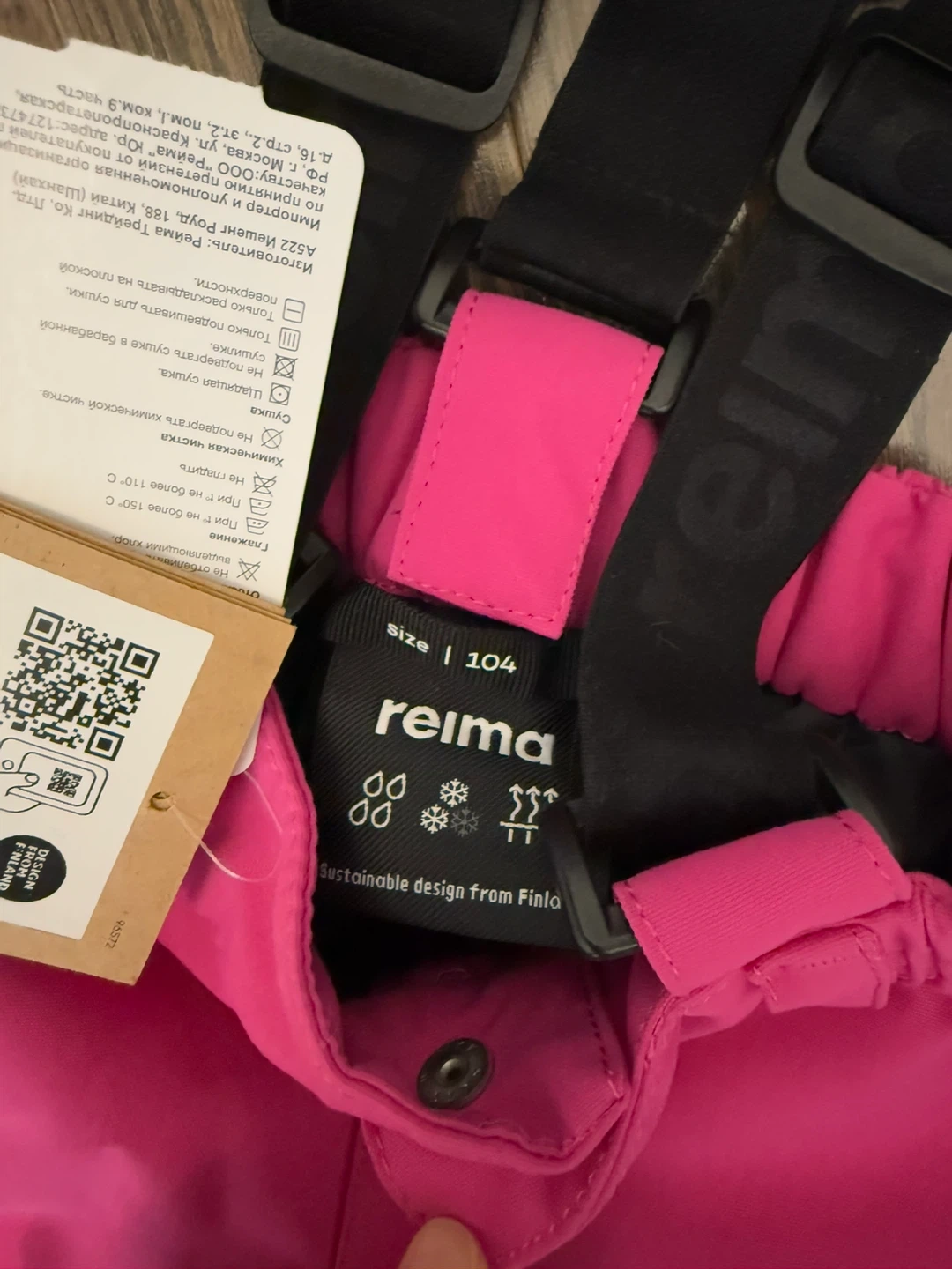 These Reima snow pants are perfect for keeping your little one warm and dry this winter! They're a vibrant pink colour and size 104. Featuring adjustable suspenders, they're designed for a comfortable fit. Made with sustainable design from Finland, these pants are both stylish and eco-friendly