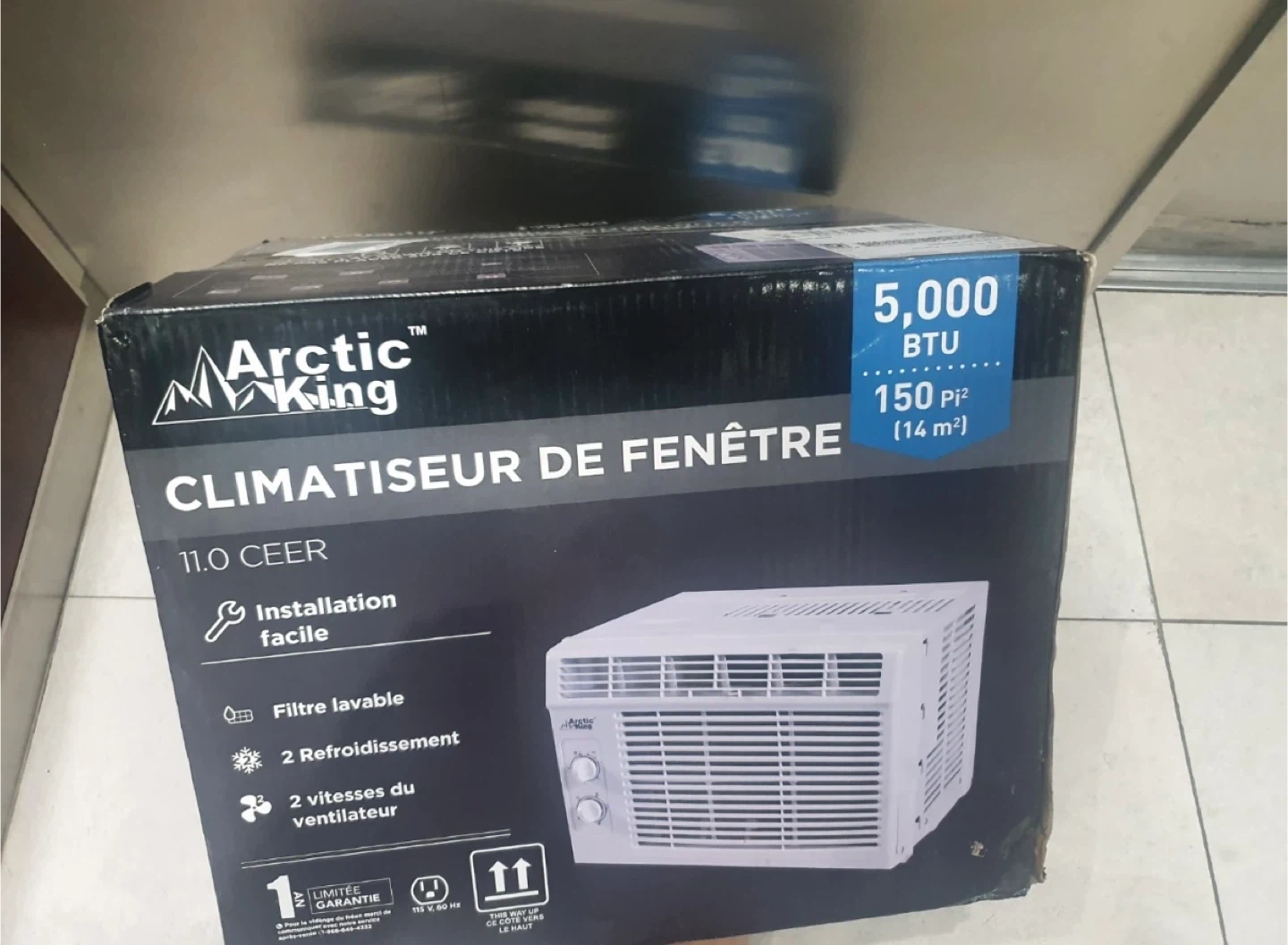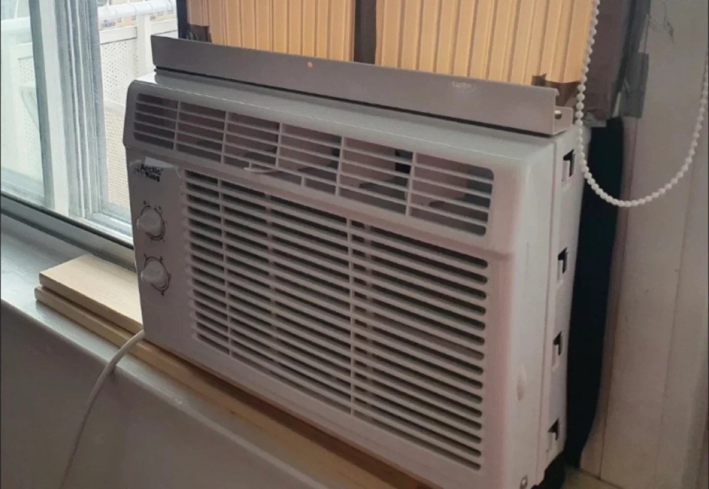 Selling an Arctic King window air conditioner! It's a 5,000 BTU unit, perfect for cooling a room up to 150 square feet. Easy installation and a washable filter. It also offers two fan speeds for your comfort! Original Box included.