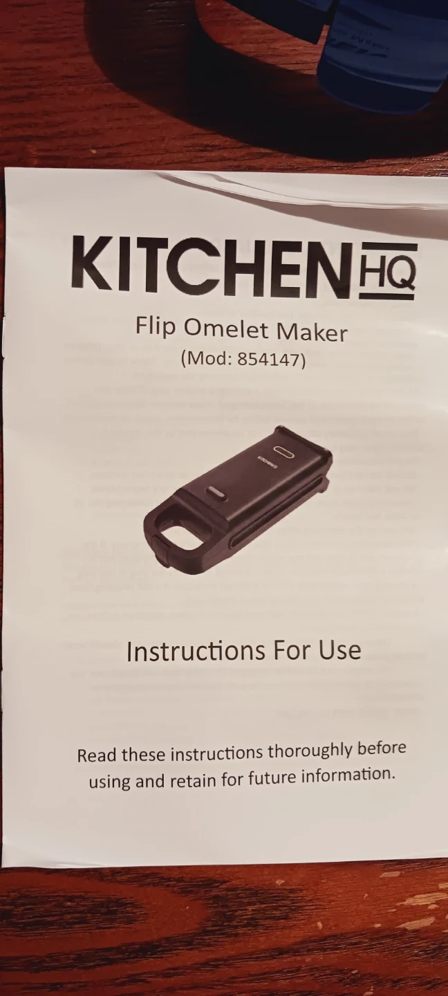 New !! Kitchen HQ Flip Omelet Maker !! It's a flip omelet maker for easy cooking. Model number 854147 is printed on the instructions. It has indicator lights for power and readiness. Brand New !! Never been used !! ALL MY PRICES ARE NEGOTIABLE !!