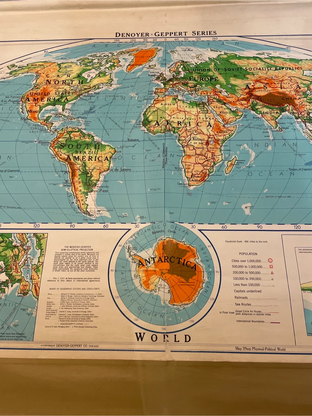 Buy & SellVintage Wall Map on Wooden DowelsVintage Wall Map on Wooden Dowels$150A Denoyer-Geppert Series Semi-Elliptical World Map from May 1, 1967. Measures 53" x 63". Great statement piece for your wall!WHERE TO MEETCheck LocationView MapSELLERAngieParkdale1129 reviews0 chats·0 favorites·8 viewsSEND CHAT TO SELLERHi Angie! I’m interested in your listing.Hi Angie! I’m interested in your listing.Get the Karrot app to chatSign In to chat