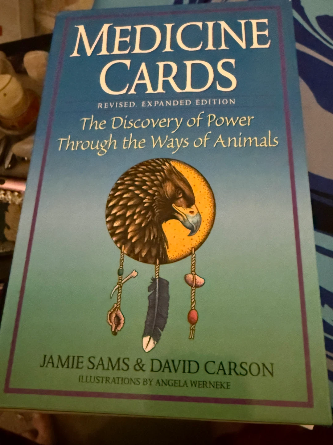 This is the Revised Expanded Edition of Medicine Cards by Jamie Sams & David Carson. It features illustrations by Angela Werneke. This deck helps explore animal spirits for personal discovery.