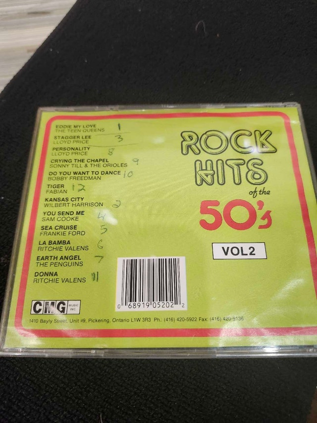 Relive the golden age of rock 'n' roll with this CD featuring classic tracks from the Rock Hits of the 50's Vol. 2. This CD is in used condition, adding to its vintage charm. Artist: Various, Format: CD, Genre: Rock 'n' Roll, Release Year: Unknown. Cash accepted.