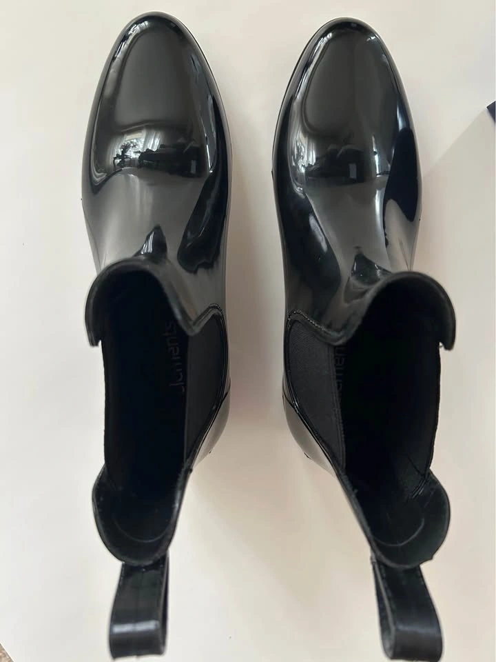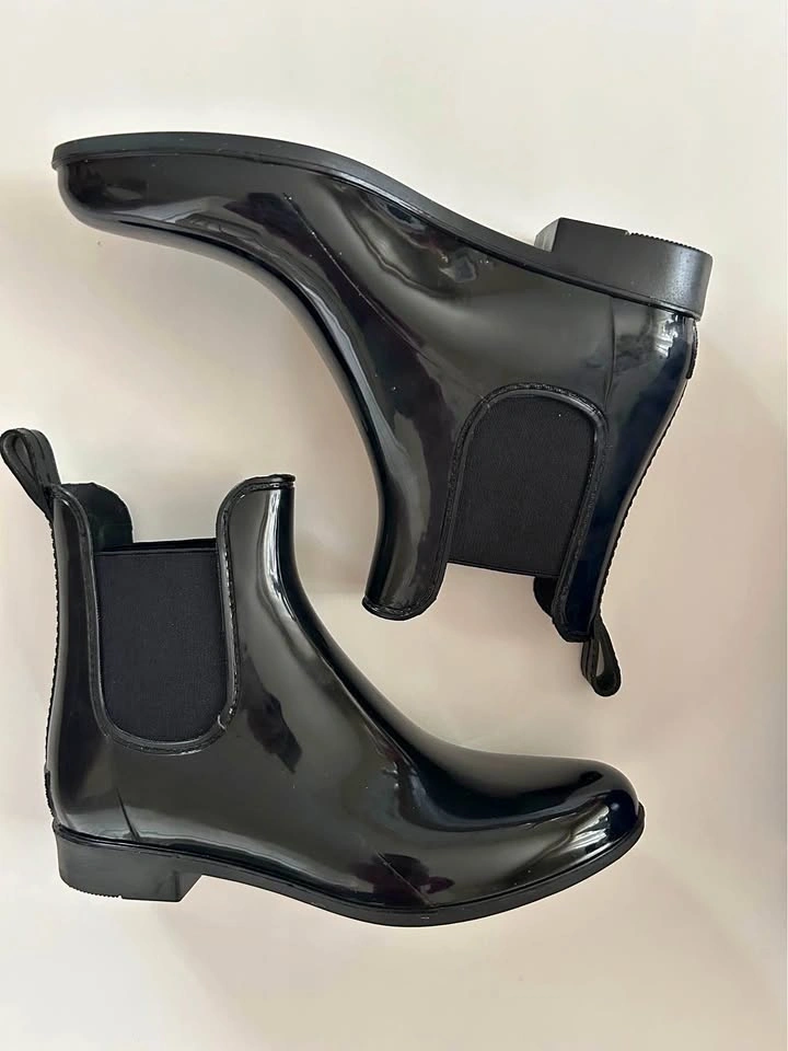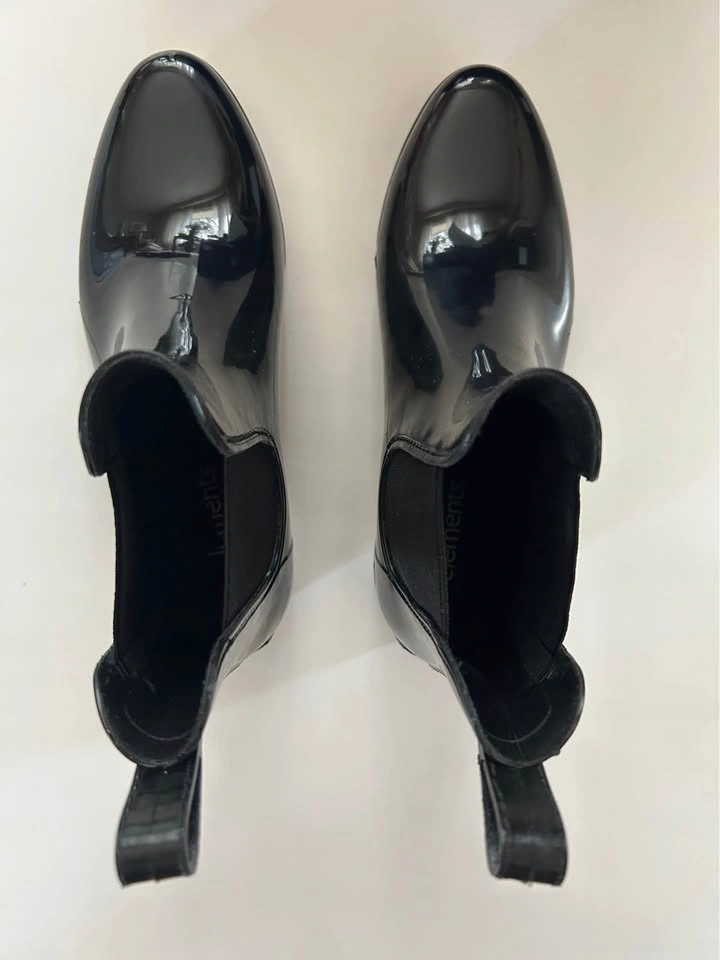 Ladies Black Patent Chelsea Rain Boots Size 8 Markham