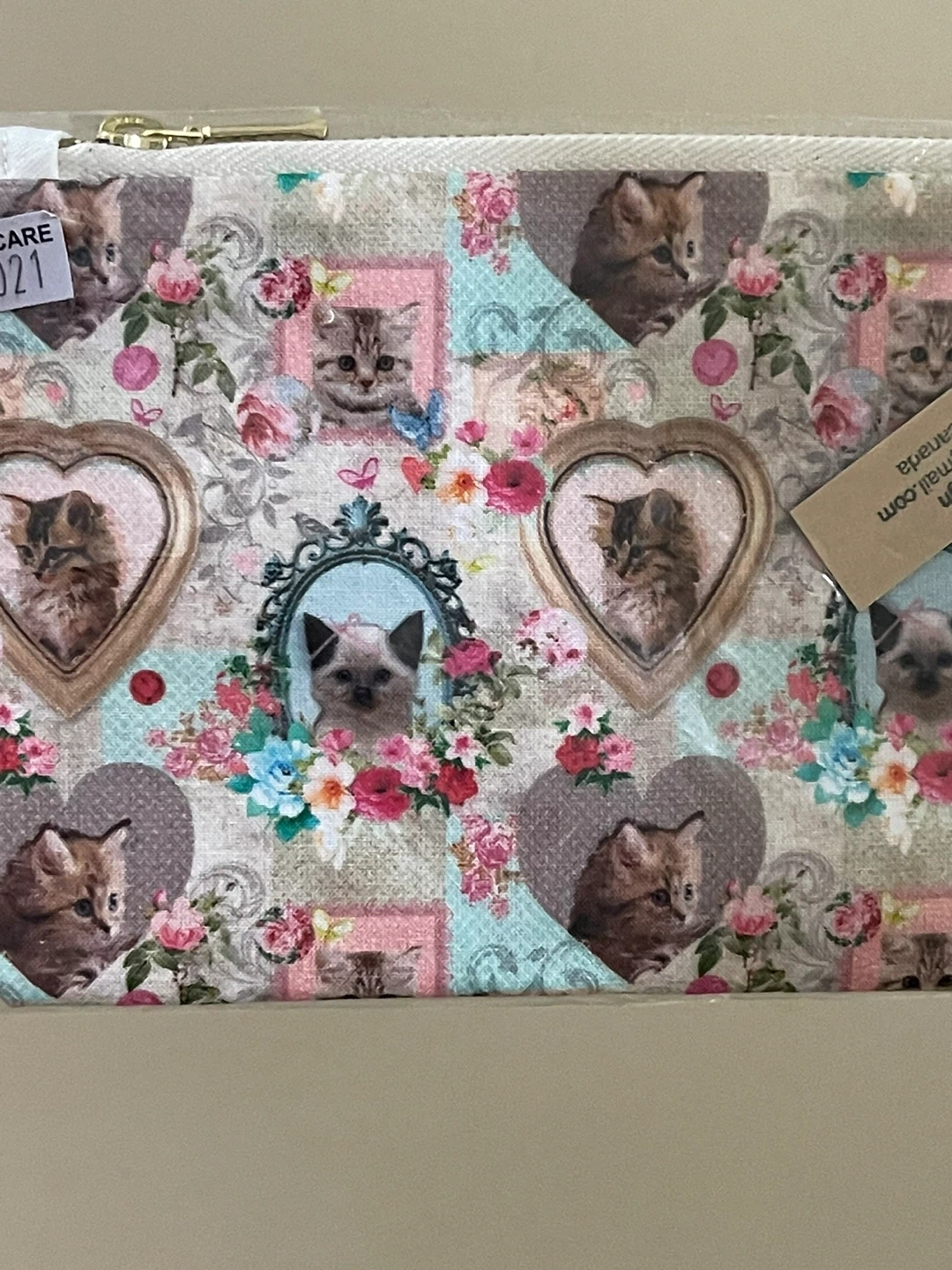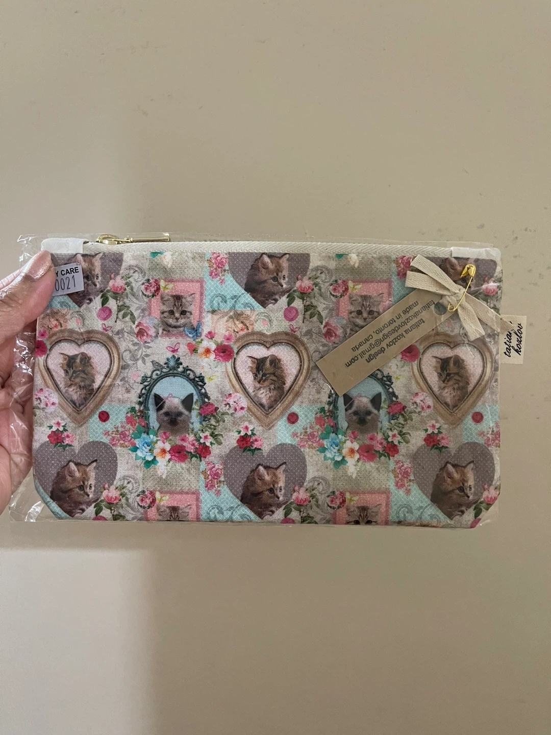 Cutest Whimsical Romantic Kitty Cat Bow Makeup Bag