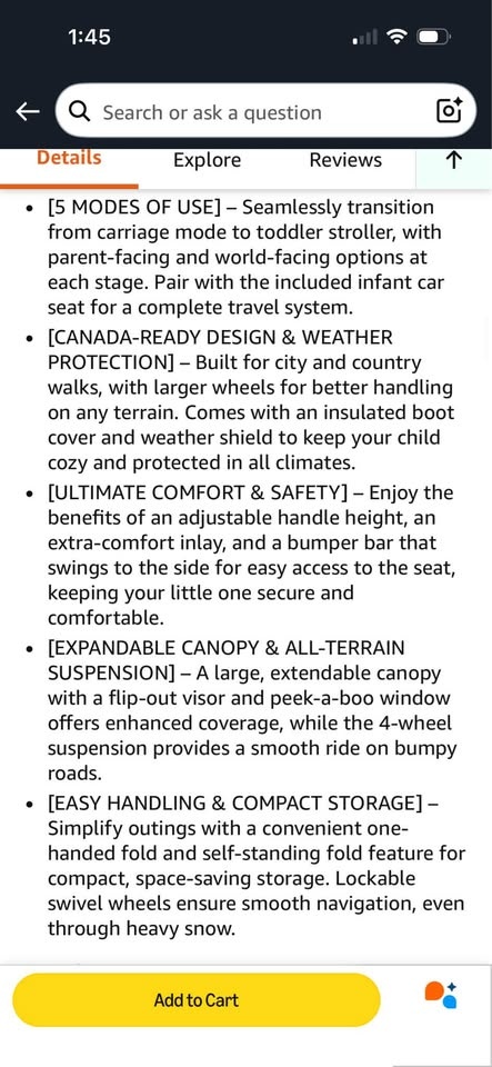 This Maxi-Cosi travel system is brand new, manufactured in 2025. The retail price is $1016 CAD with tax on Amazon. It has 5 modes of use. See photos for detailed description and features. Visit my profile for more products like this.
