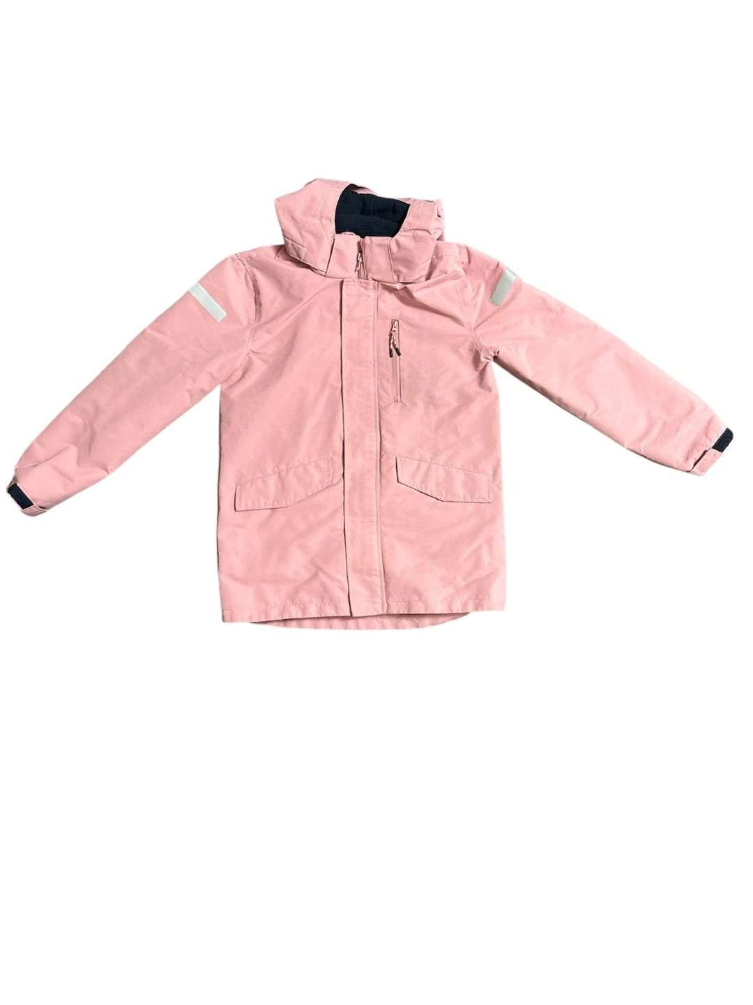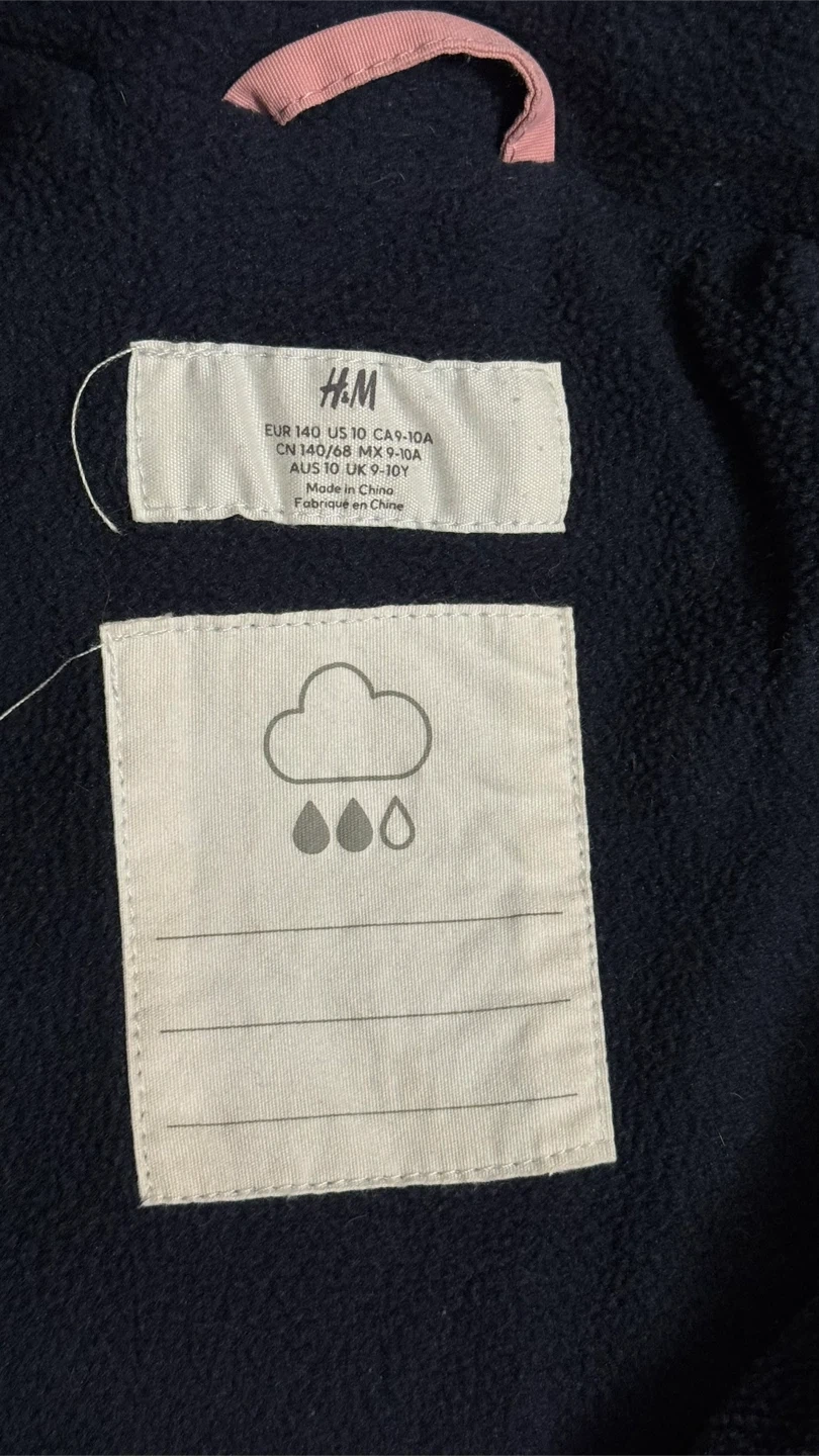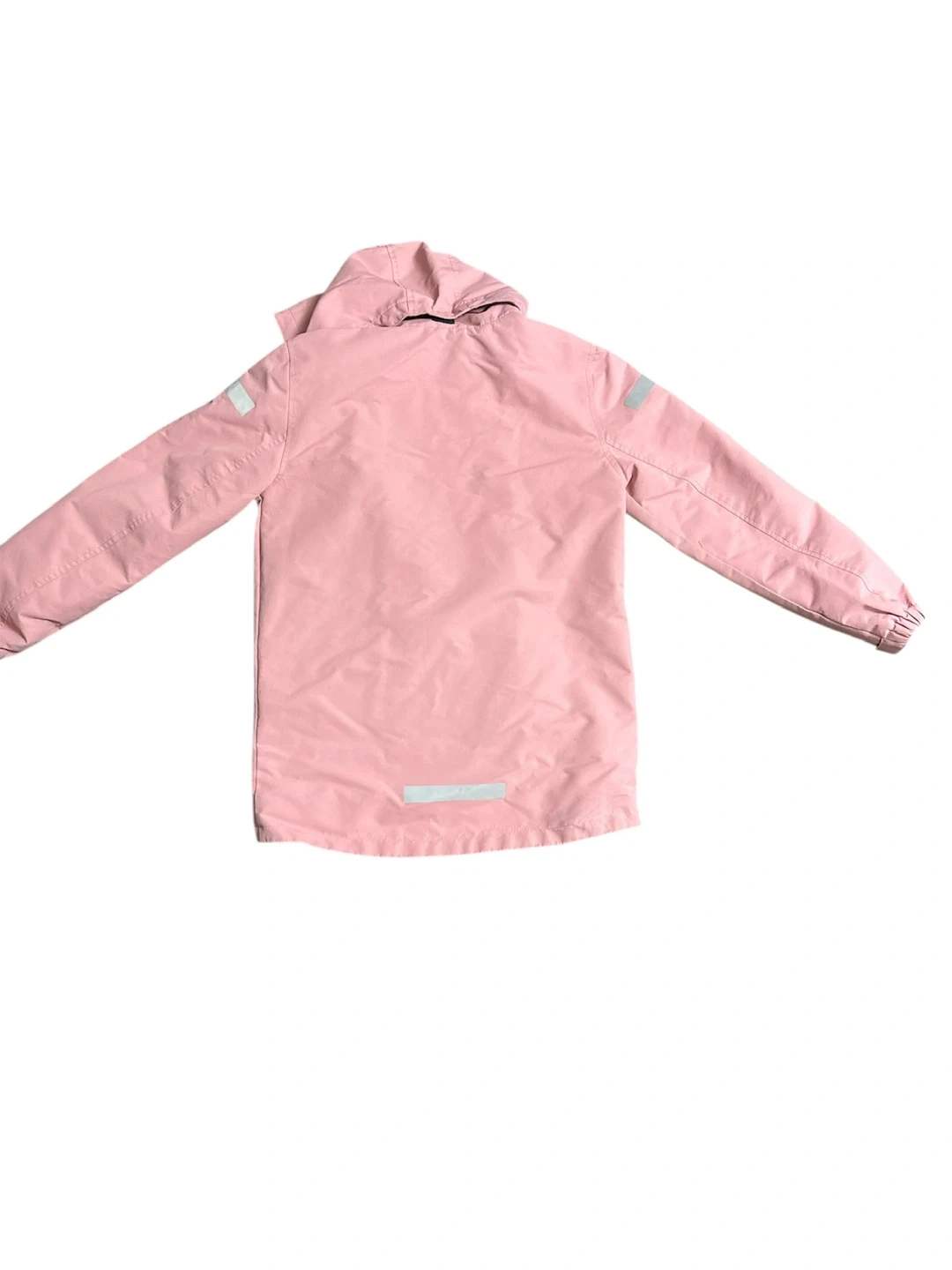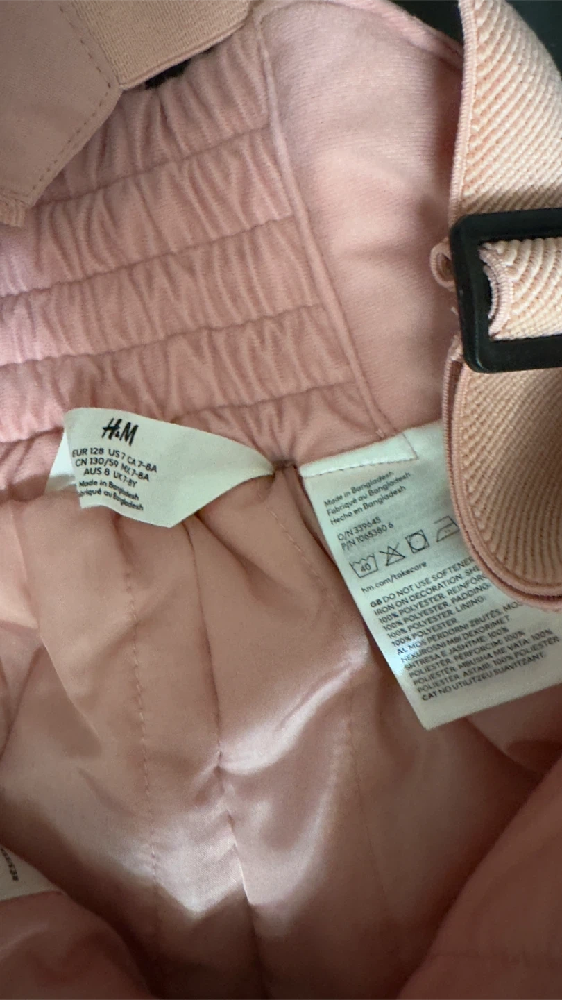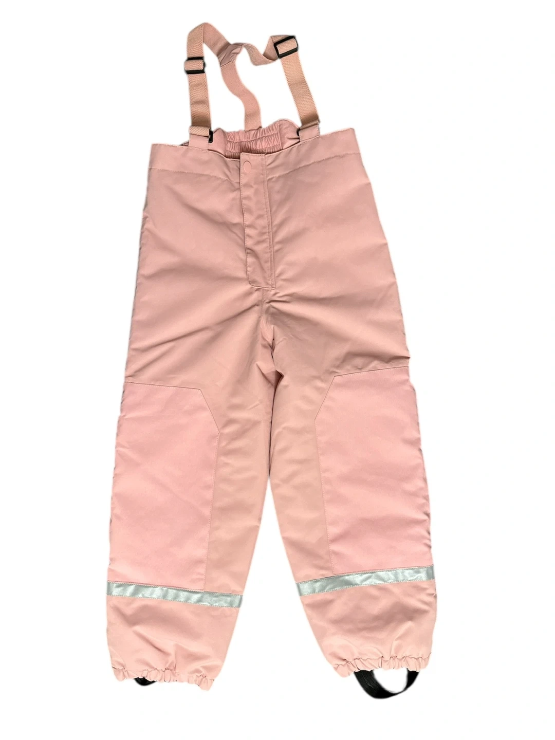 This H&M set includes pink waterproof overalls and a matching jacket. The overalls feature elastic suspenders and ankle cuffs, while the jacket has a hood and reflective details for visibility. Perfect for keeping kids dry and warm during outdoor play, especially on rainy or snowy days!