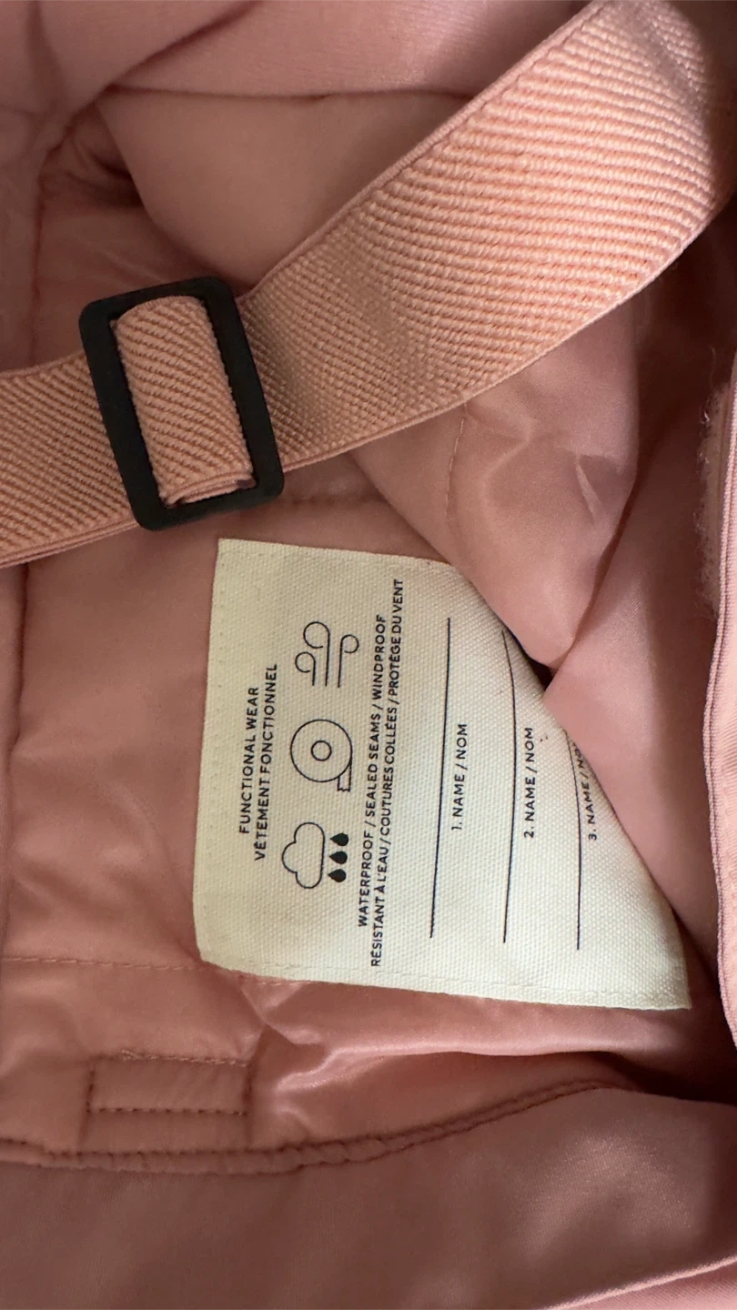This H&M set includes pink waterproof overalls and a matching jacket. The overalls feature elastic suspenders and ankle cuffs, while the jacket has a hood and reflective details for visibility. Perfect for keeping kids dry and warm during outdoor play, especially on rainy or snowy days!