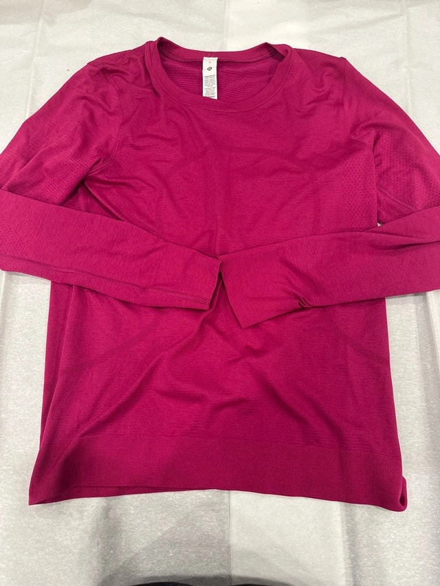 Vibrant hot pink Lululemon long-sleeve top, designed for comfort and performance. Soft, stretchy fabric that moves with you, ideal for workouts or casual wear. Well cared for and in great condition, adding a pop of color to your active wardrobe.