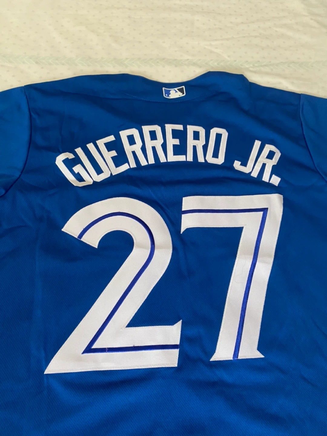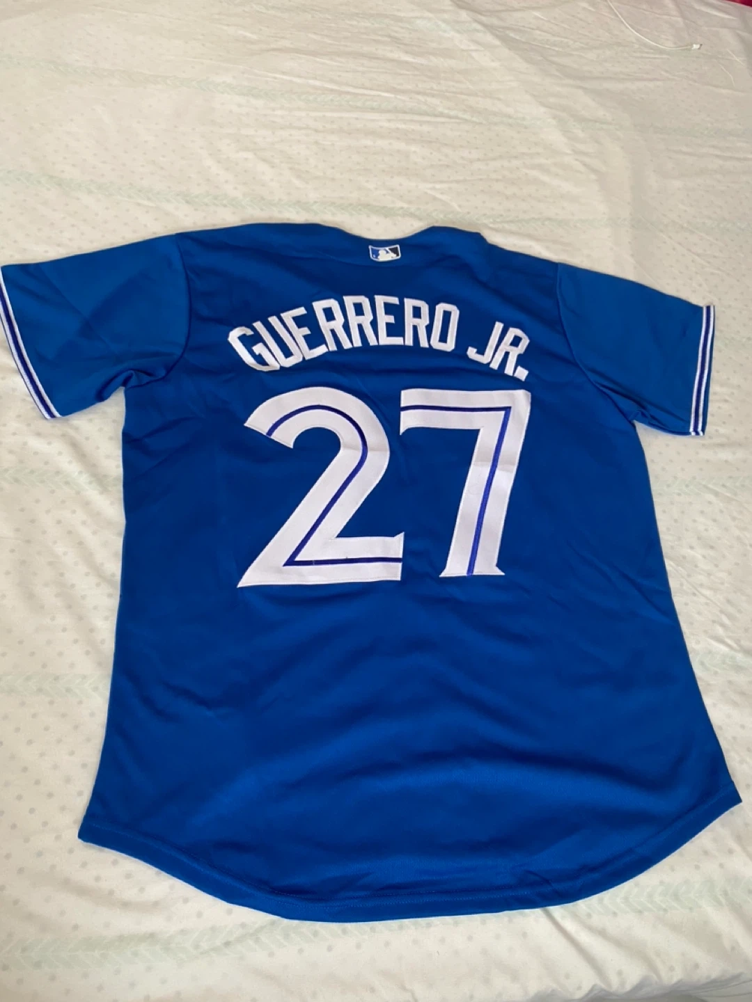 Blue Jays Vlady Guerrero Jr. #27 replica Jersey. Perfect for team spirit in the 2026 exciting season. Imported directly from China warehouse. Runs true to size. Available in Mens M-XXXL sizes in limited quantities. Please inquire for your preferred size. Pickup only at Keele/Lawrence W intersection.