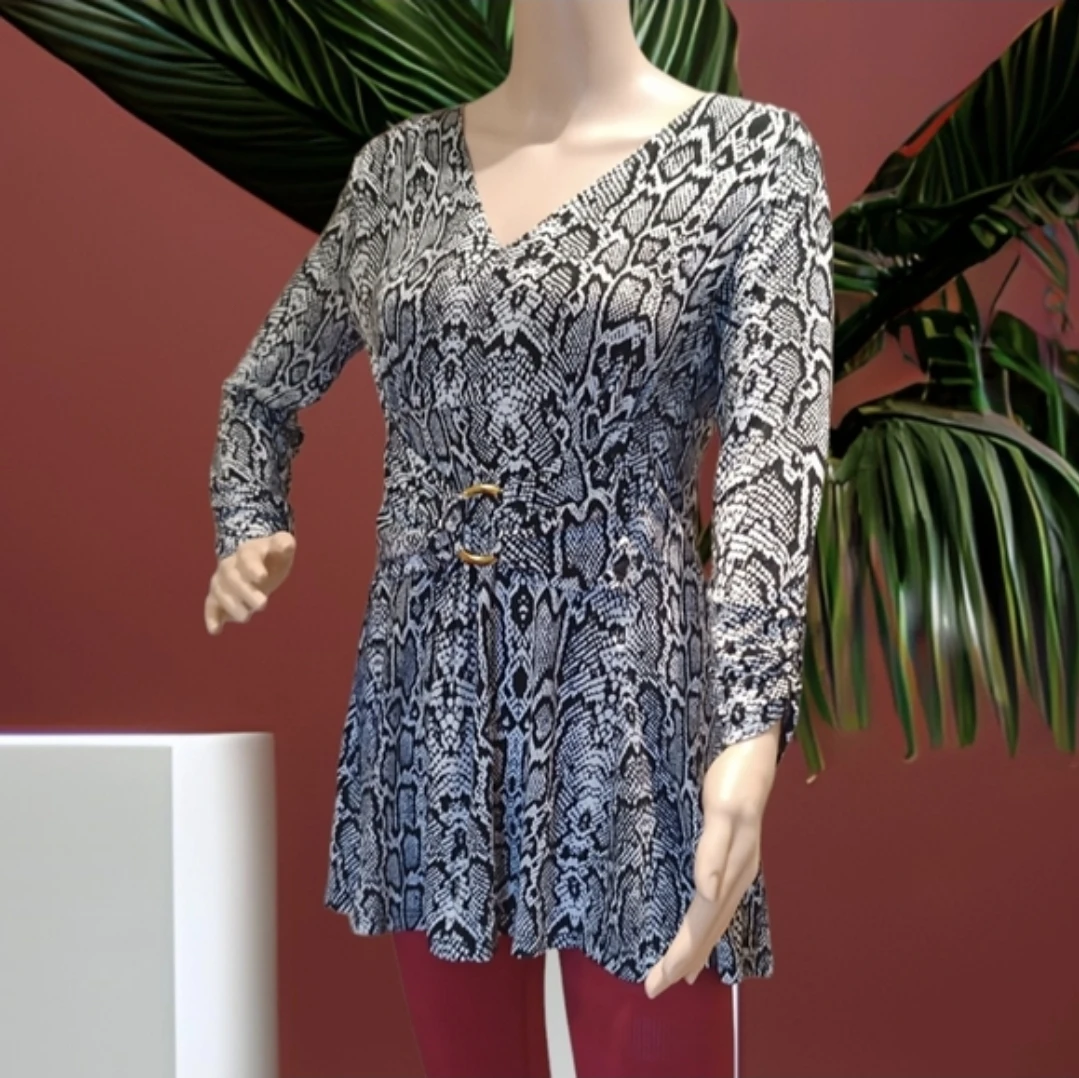 Women's Snake Print Tunic Top with Belt MATERNITY SMALL