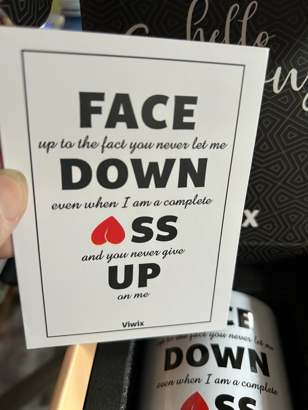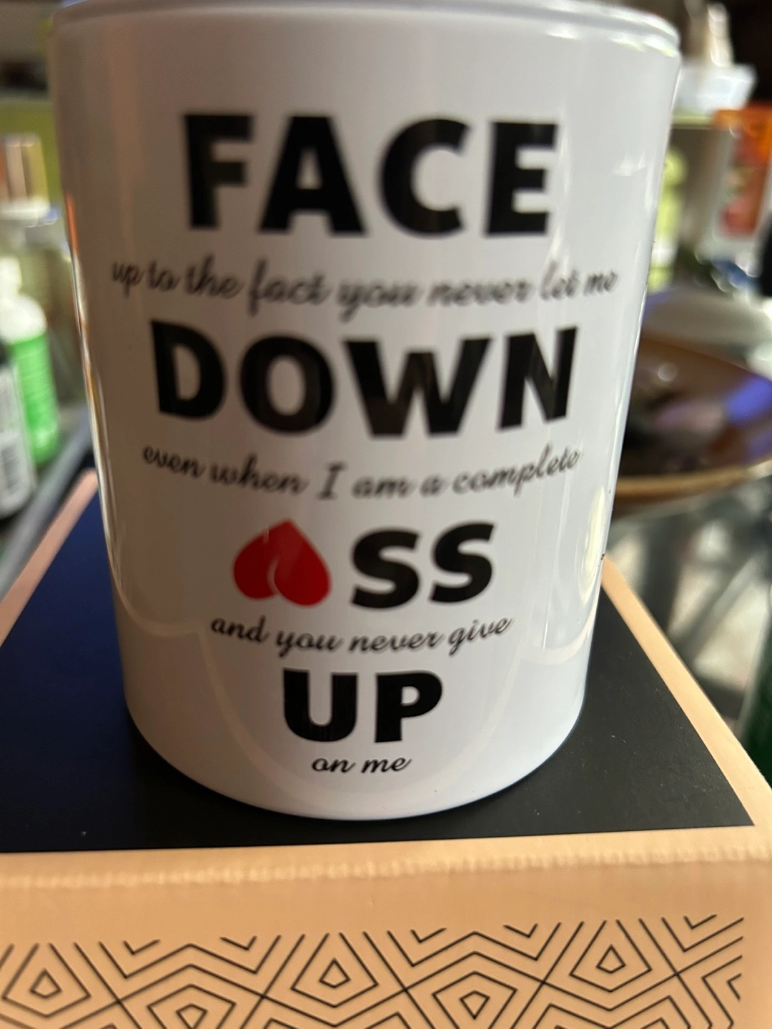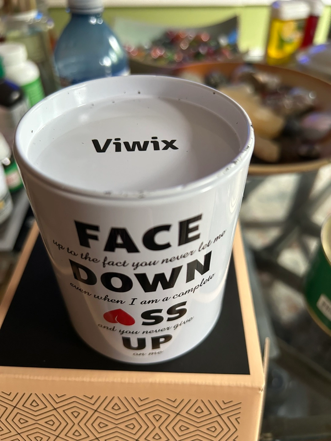 Selling a Viwix candle with a unique message! It says "Face up to the fact you never let me Down even when I am a complete... and you never give Up on me". A fun and quirky addition to any room